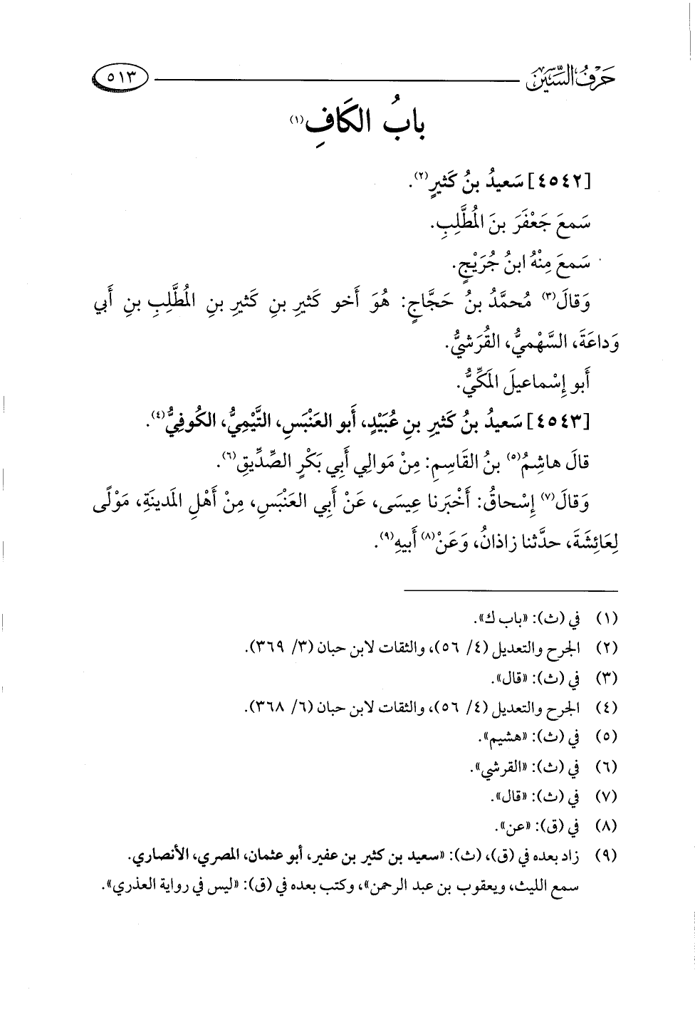 [٤٥٤٣] سَعيدُ بنُ كَثيرِ بنِ عُبَيْدٍ، أَبو العَنْبَسِ، التَّيْمِيُّ، الكُوفِيُّ (¬٤).