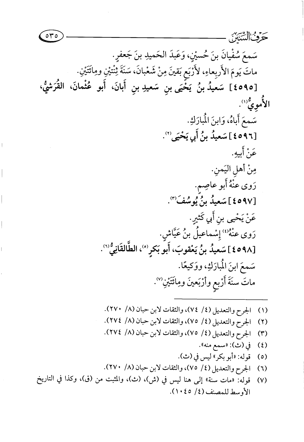 [٤٥٩٥] سَعيدُ بنُ يَحْيَى بنِ سَعيدِ بنِ أَبانَ، أَبو عُثْمانَ، القُرَشيُّ، الأُموِيُّ (¬١).