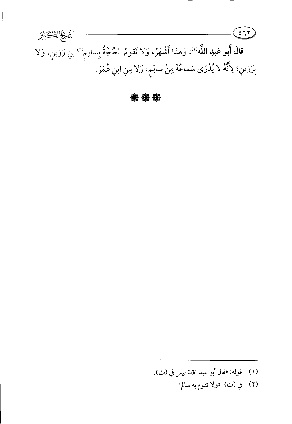 قالَ أَبو عَبدِ اللَّه (¬١): وَهذا أَشْهَرُ، وَلا تَقومُ الحُجَّةُ بِسالِمِ (¬٢) بنِ رَزينٍ، وَلا بِرَزينٍ؛ لِأَنَّهُ لا يُدْرَى سَماعُهُ مِنْ سالِمٍ، وَلا مِنِ ابْنِ عُمَرَ.