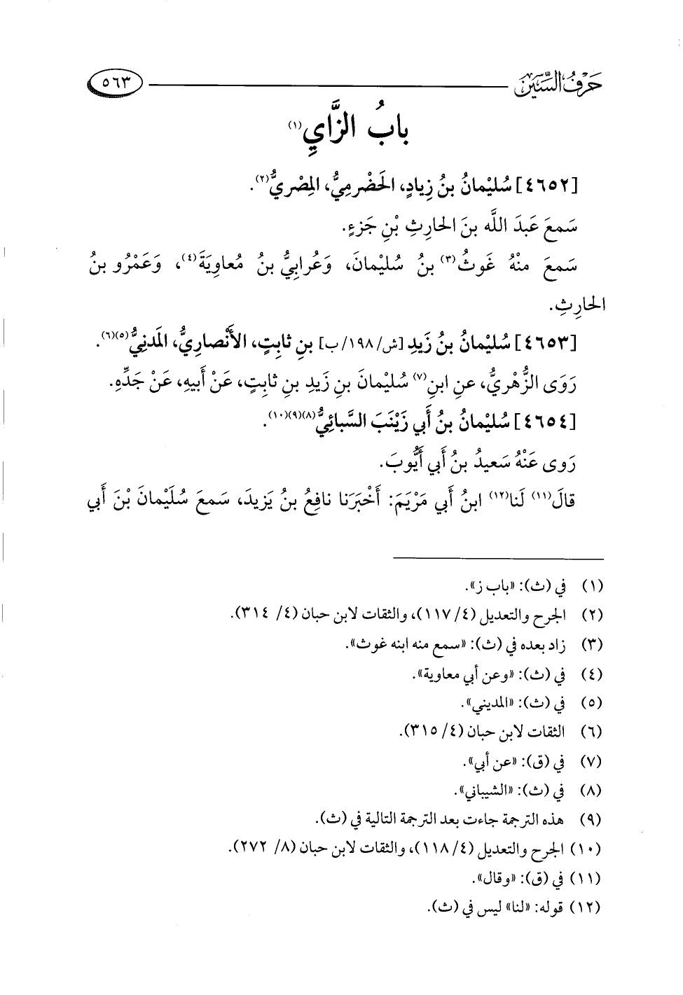 [٤٦٥٤] سُليْمانُ بنُ أَبي زَيْنَبَ السَّبائِيُّ (¬٨) (¬٩) (¬١٠).