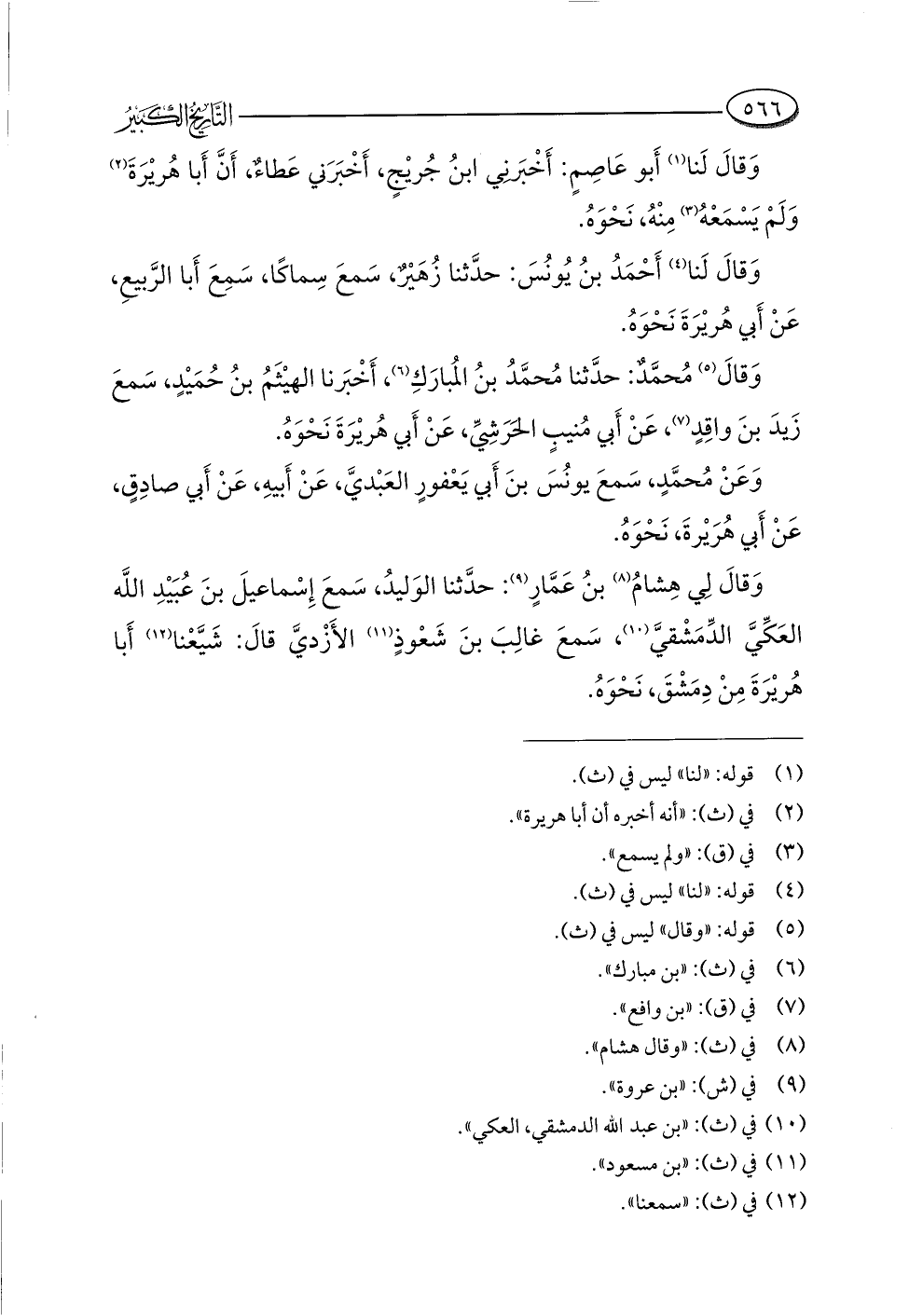 وَقالَ (¬٥) مُحمَّدٌ: حدَّثنا مُحمَّدُ بنُ المُبارَكِ (¬٦)، أَخْبَرنا الهيْثَمُ بنُ حُمَيْدٍ، سَمعَ زَيدَ بنَ واقِدٍ (¬٧)، عَنْ أَبي مُنيبٍ الحَرَشِيِّ، عَنْ أَبي هُريْرَةَ نَحْوَهُ.
