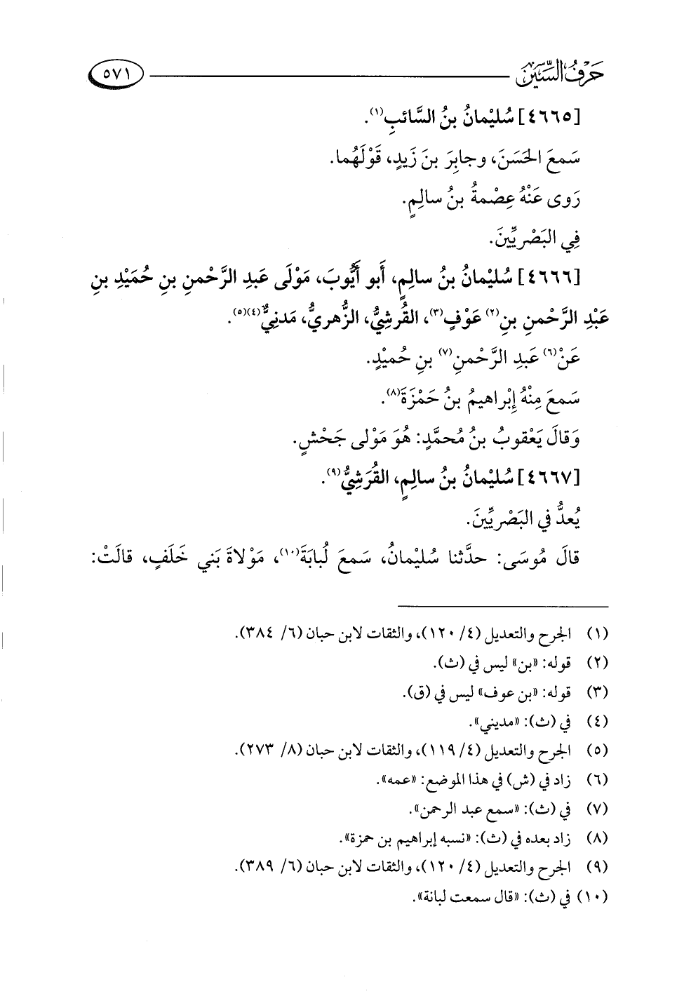 (¬٥) الجرح والتعديل (٤/ ١١٩)، والثقات لابن حبان (٨/ ٢٧٣).