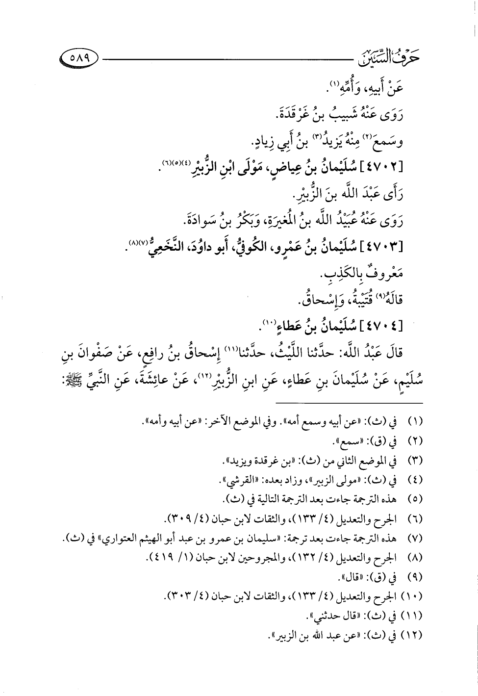 (¬٧) هذه الترجمة جاءت بعد ترجمة: "سليمان بن عمرو بن عبد أبو الهيثم العتواري" في (ث).