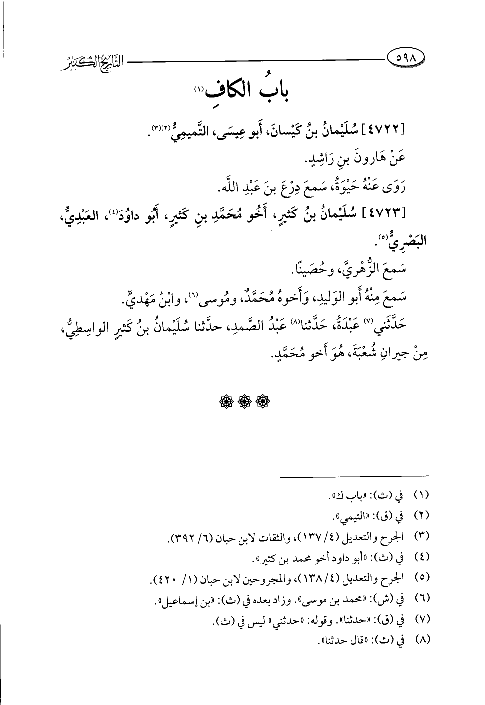 كتاب التاريخ الكبير للبخاري - ت الدباسي والنحال (اسم الجزء: 4)