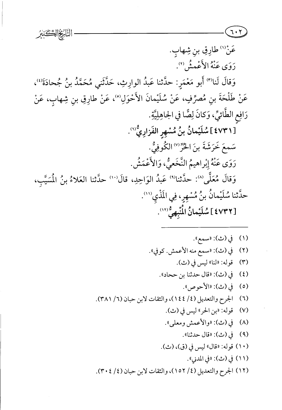 (¬١٢) الجرح والتعديل (٤/ ١٥٢)، والثقات لابن حبان (٤/ ٣٠٤).