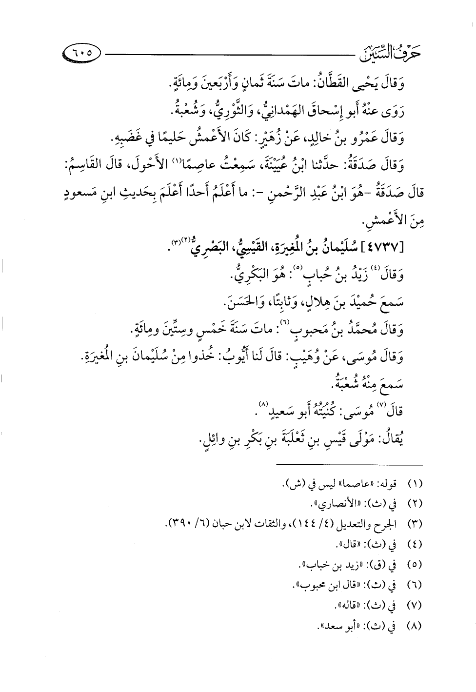 [٤٧٣٧] سُلَيْمانُ بنُ المُغِيرَةِ، القَيْسِيُّ، البَصْرِيُّ (¬٢) (¬٣).