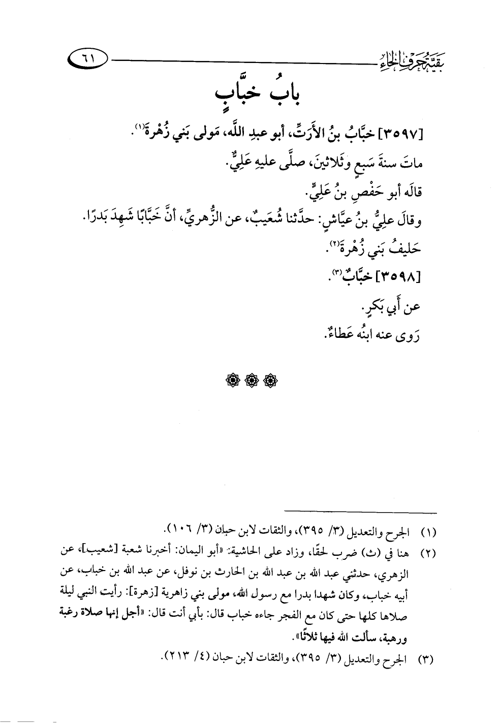 (¬٣) الجرح والتعديل (٣/ ٣٩٥)، والثقات لابن حبان (٤/ ٢١٣).