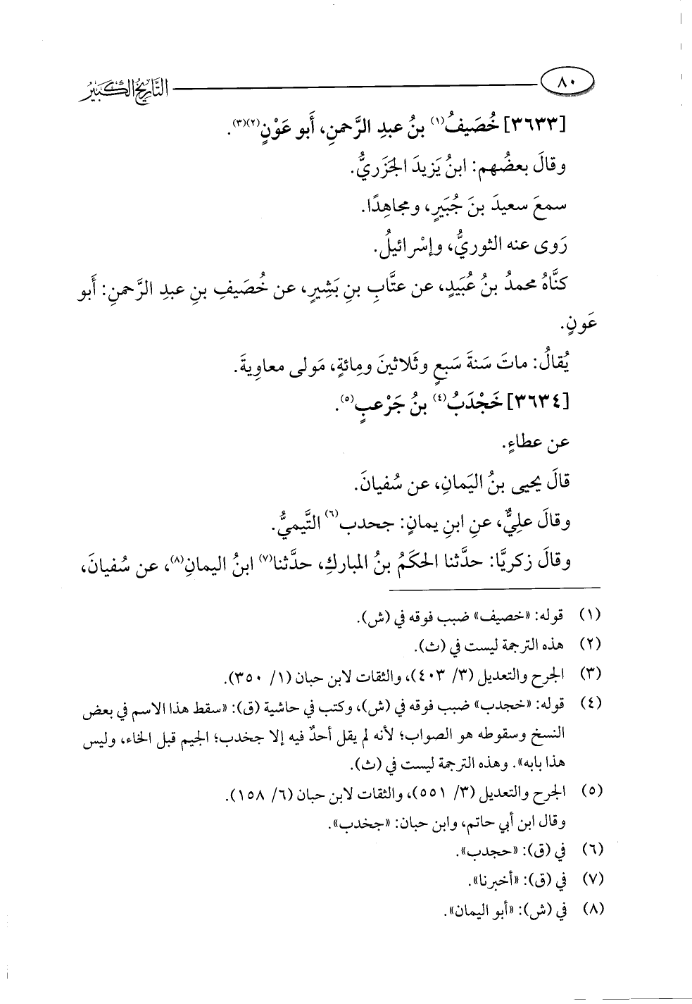 (¬٤) قوله: "خجدب" ضبب فوقه في (ش)، وكتب في حاشية (ق): "سقط هذا الاسم في بعض النسخ وسقوطه هو الصواب؛ لأنه لم يقل أحدٌ فيه إلا جخدب؛ الجيم قبل الخاء، وليس هذا بابه". وهذه الترجمة ليست في (ث).