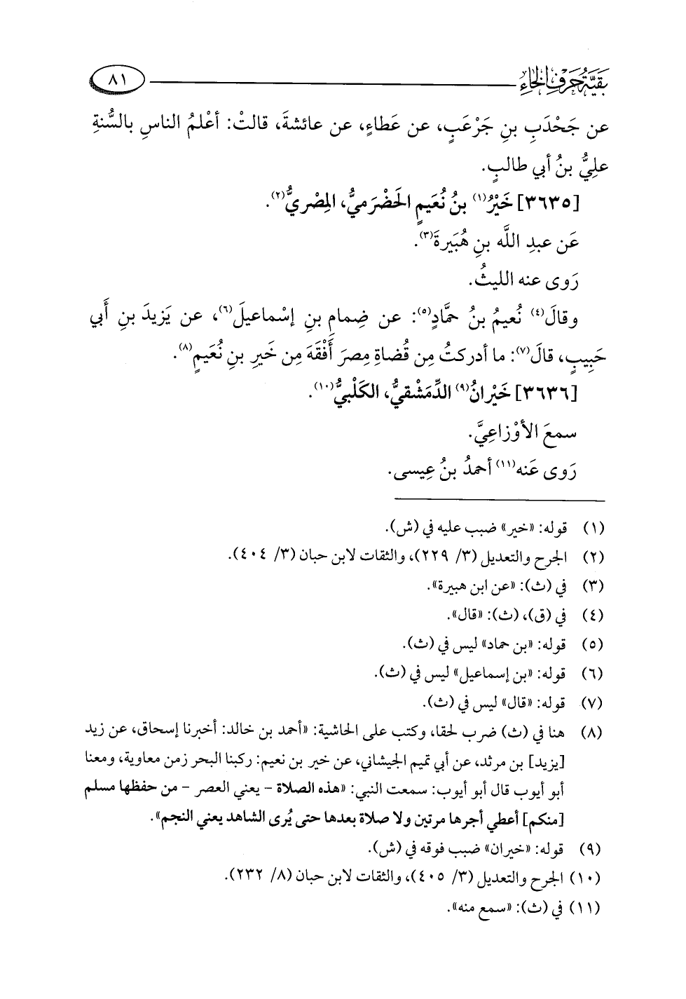 (¬١٠) الجرح والتعديل (٣/ ٤٠٥)، والثقات لابن حبان (٨/ ٢٣٢).