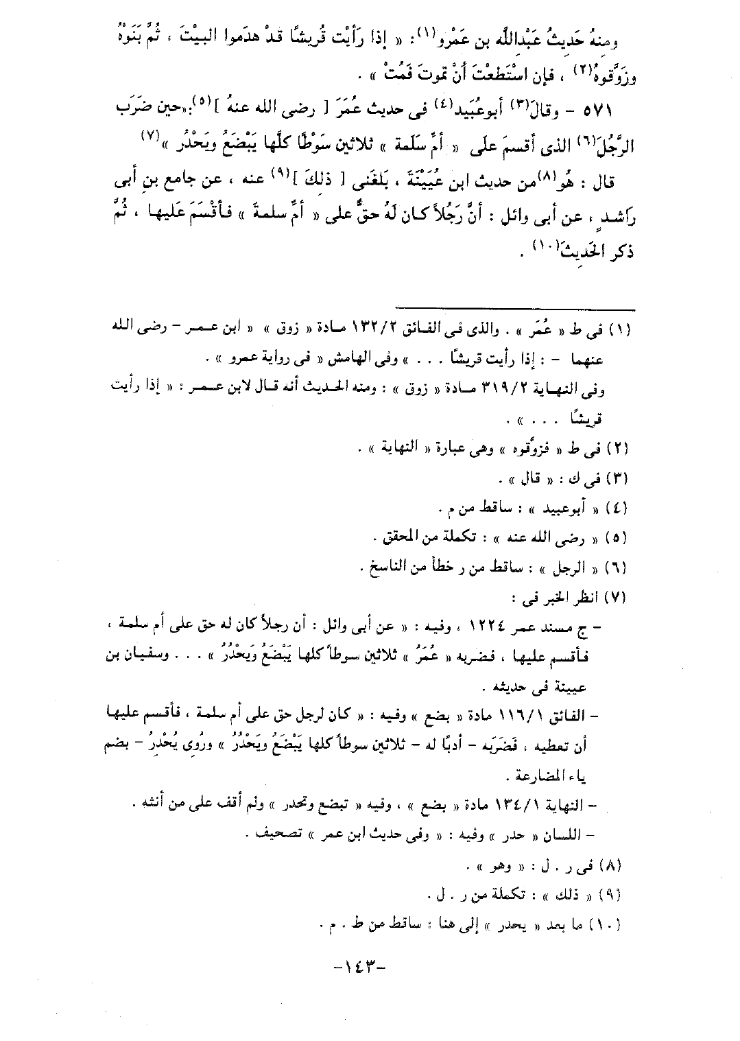 571 - وقال أبو عبيد في حديث [رضي الله عنه]: "حين ضرب الرجل الذي أقسم على "أم سلمة" ثلاثين سوطاً كلها يبضع ويحدر".