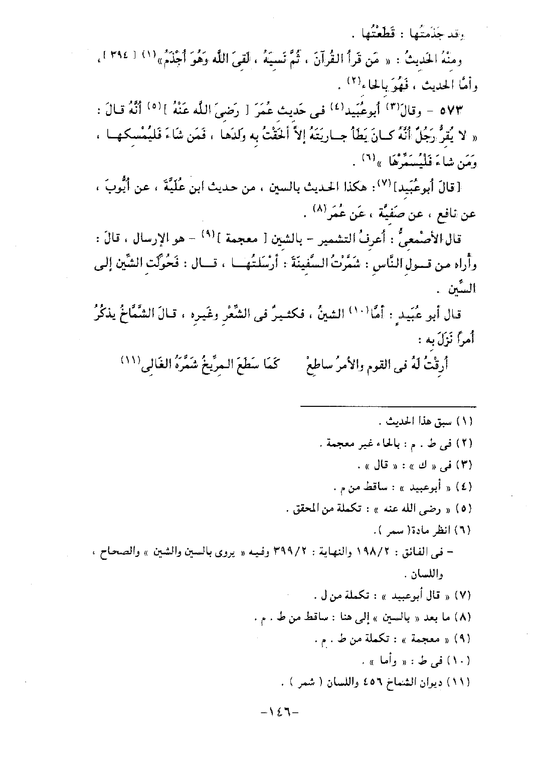 [قال أبو عبيد]: هكذا الحديث بالسين، من حديث ابن عُلية، عن أيوب، عن نافع: عن صفية، عن عمر.