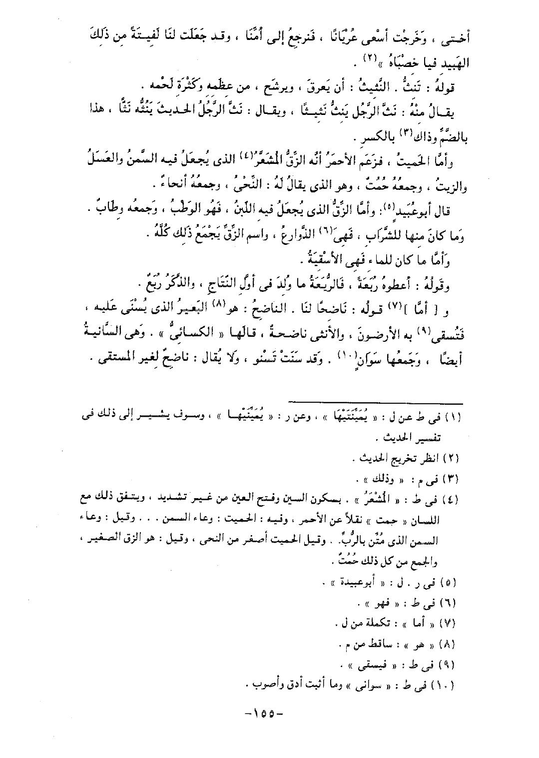 وأما الحميتُ، فزعم الأحمر أنه الزق المشعر الذي يُجعل فيه السمن والعسل والزيت، وجمعه حمتٌ، وهو الذي يقال له: النحى، وجمعه أنحاءٌ.