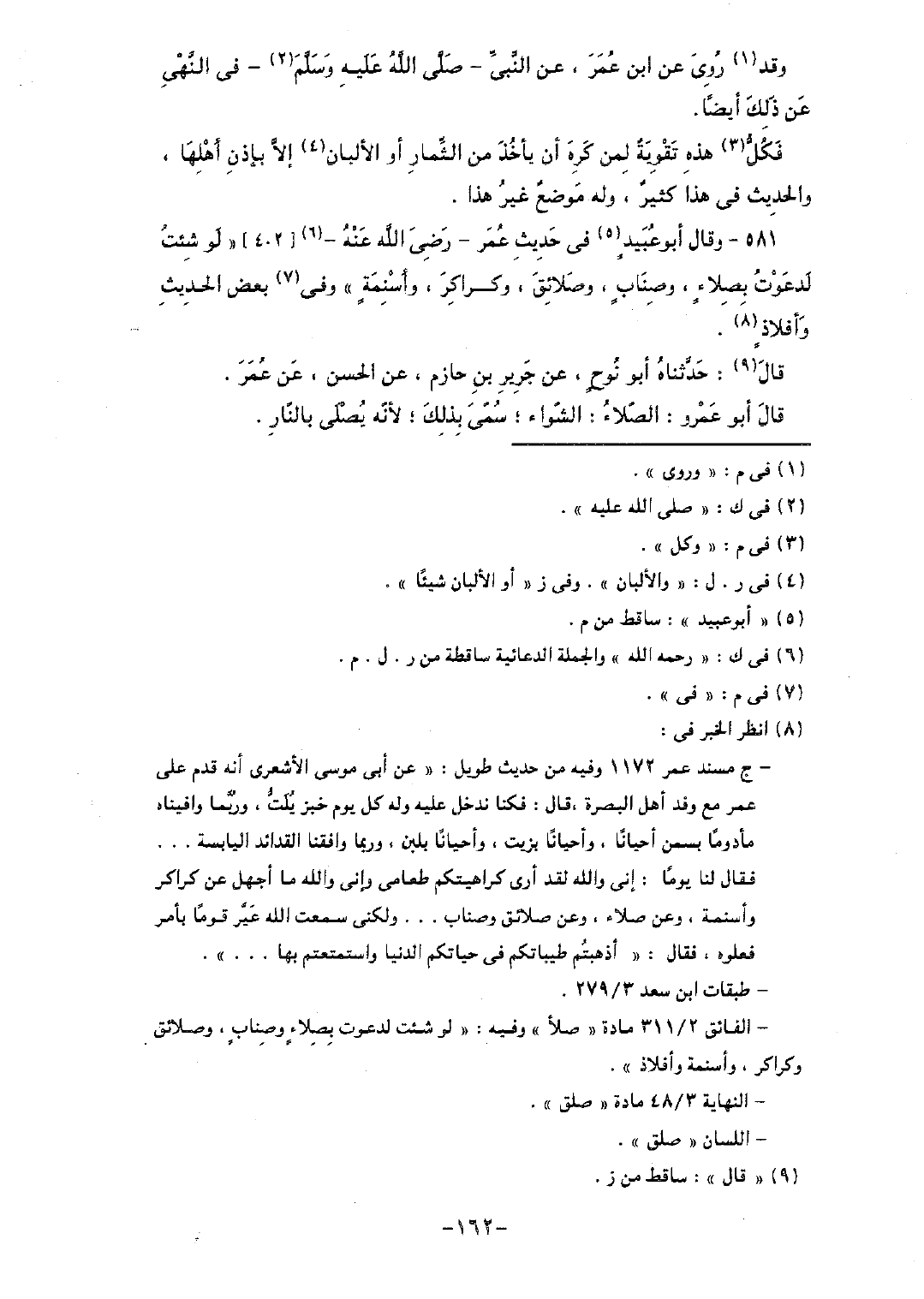 581 - وقال أبو عبيدٍ في حديث عمر- رضي الله عنه-[402] "لو شئت لدعوت بصلاءٍ، وصنابٍ، وصلائق، وكراكر، وأسنمةٍ" وفي بعض الحديث وأفلاذٍ.