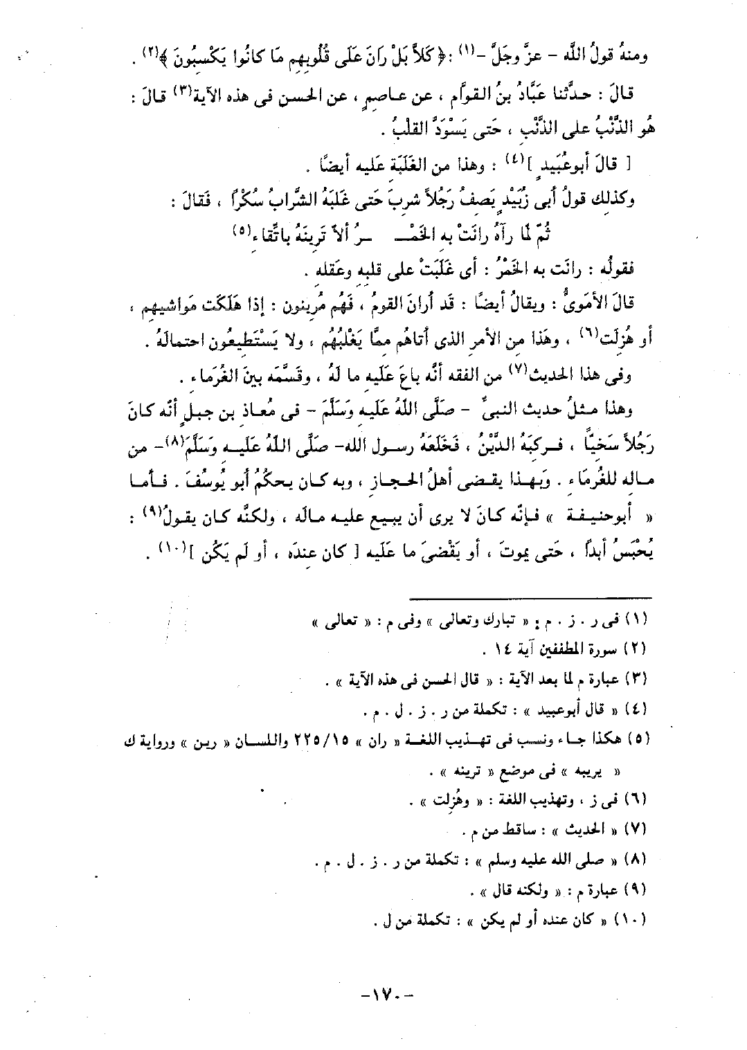 ومنه قول الله - عز وجل-: (كلا بل ران على قلوبهم ما كانوا يكسبون).