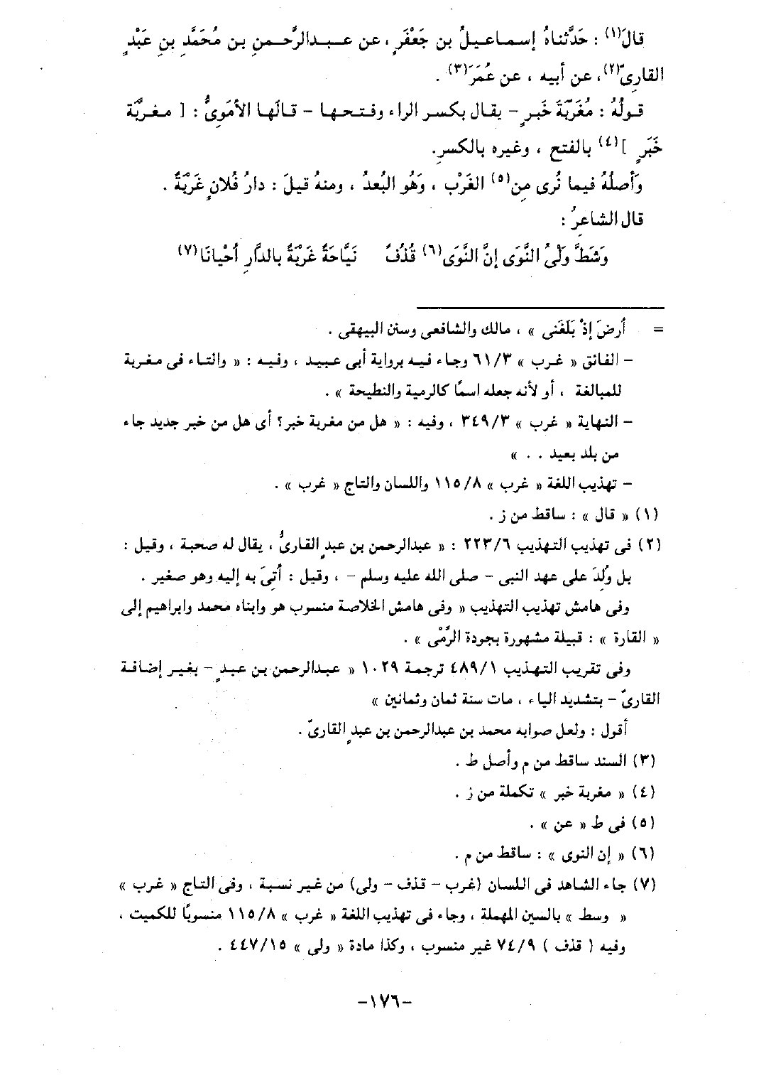 وأصله فيما نُرى من الغرب، وهو البعد، ومنه قيل: دار فلانٍ غربةٌ.