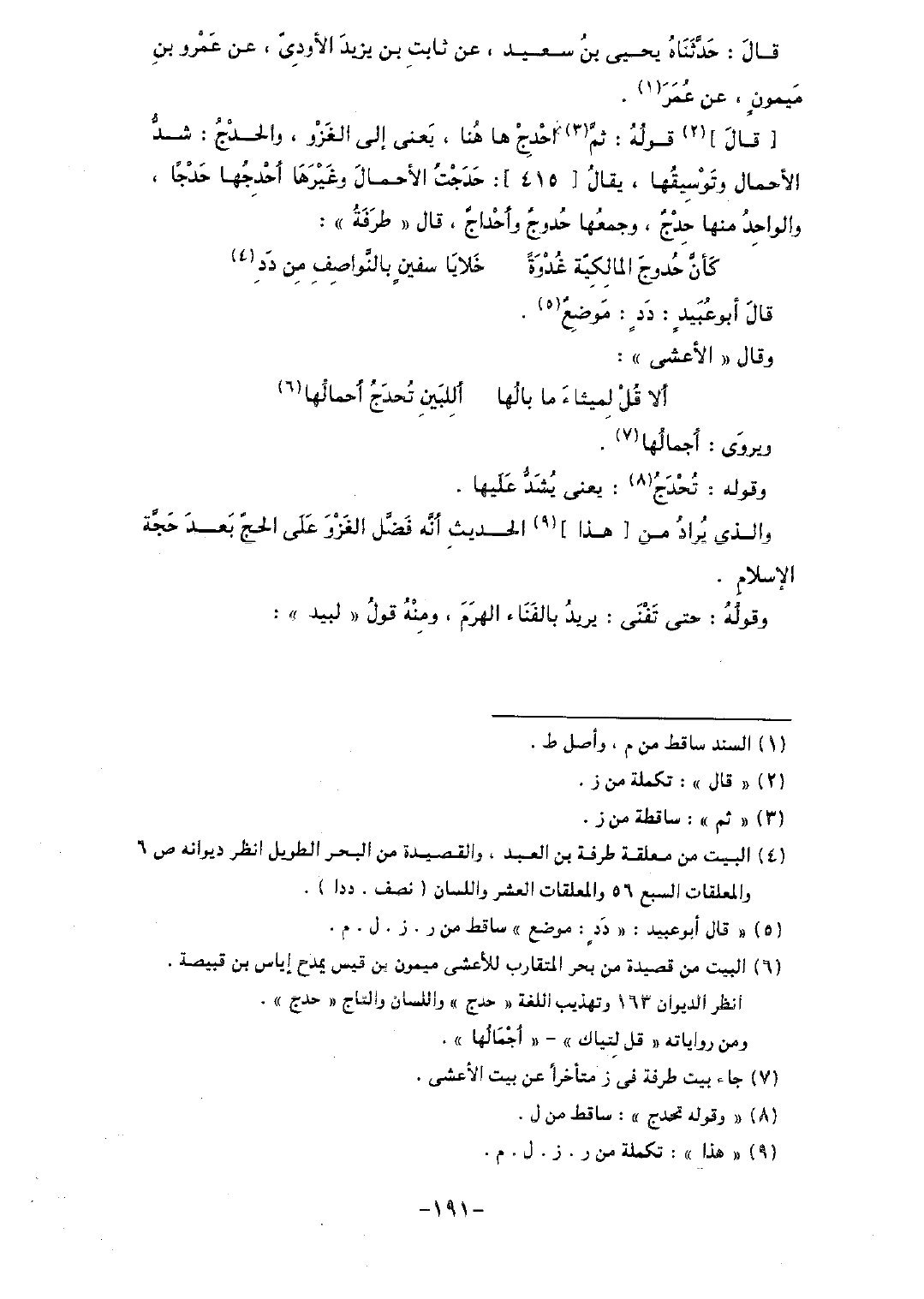 [قال] قوله: ثم احدج ها هنا، يعني إلى الغزو، والحدجُ: شد الأحمال وتوسيقها، يقال [415]: حدجت الأحمال وغيرها أحدجها حدجاً، والواحد منها حدجٌ، وجمعها حدوجٌ وأحداجٌ، قال "طرفة":