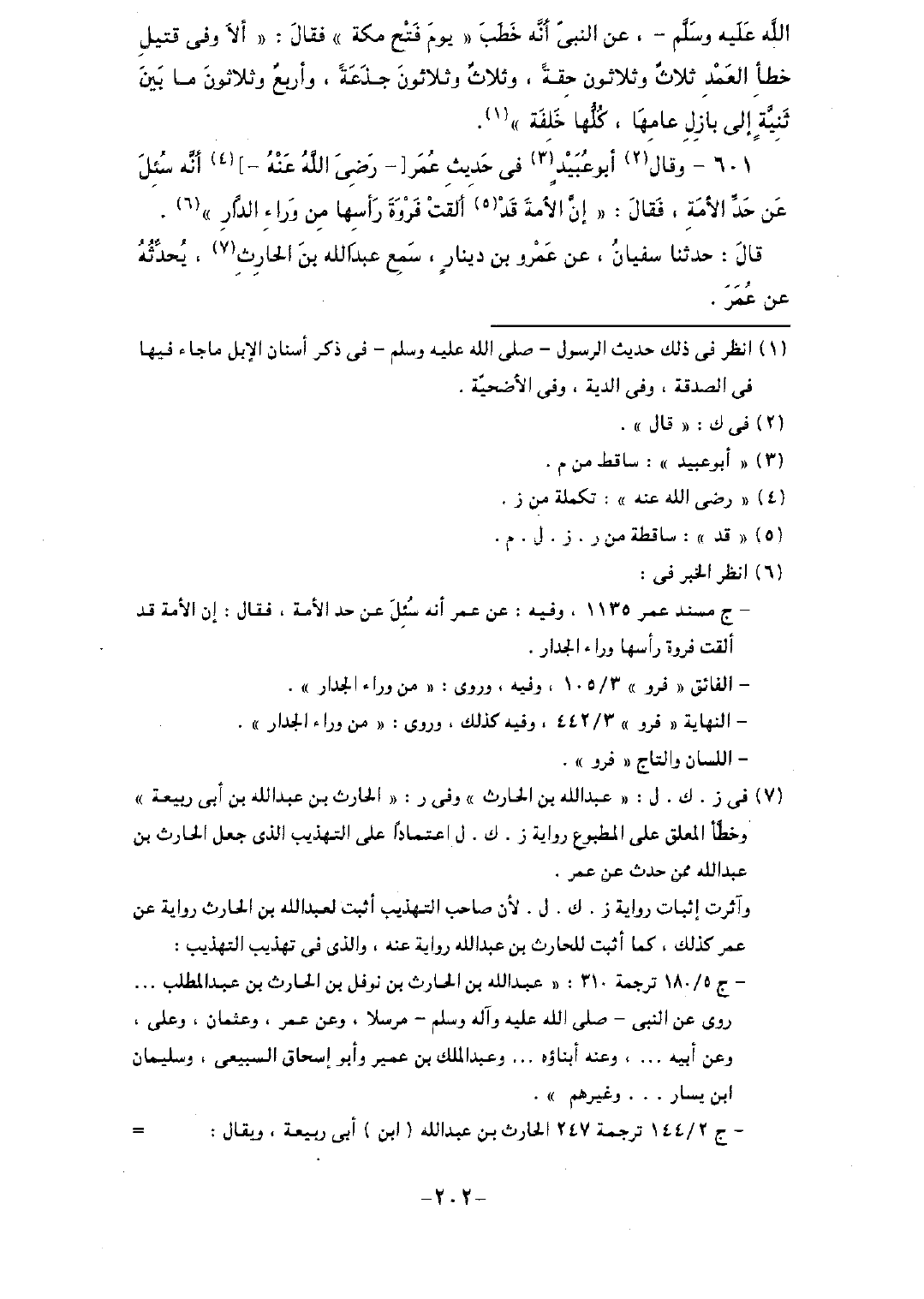 الله عليه وسلم-، عن النبي أنه خطب "يوم فتح مكة" فقال: "ألا وفي قتيل خطأ العمد ثلاثٌ وثلاثون حقةٌ، وثلاثٌ وثلاثون جذعةً، وأربعٌ وثلاثون ما بين ثنيةٍ إلى بازل عامها، كلها خلفة".