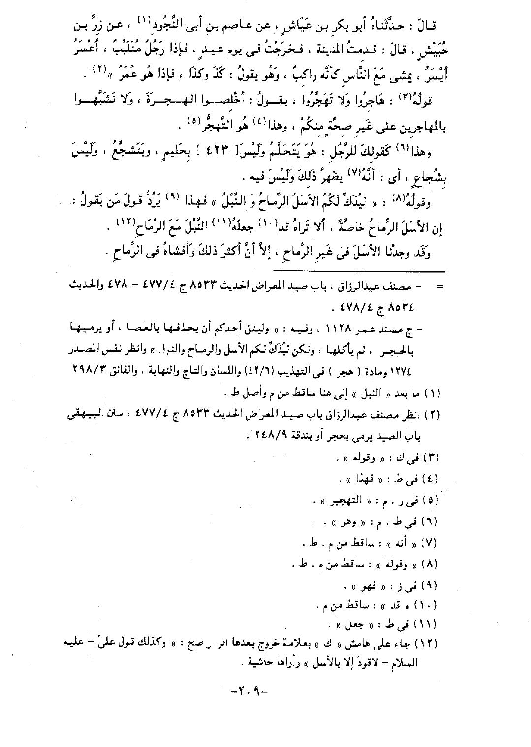 قال: حدثناه أبو بكر بن عياشٍ، عن عاصم بن أبي النجود، عن زر بن حبيشٍ، قال: قدمت المدينة، فخرجت في يوم عيدٍ، فإذا رجل متلببٌ، أعسر أيسر، يمشي مع الناس كأنه راكبٌ؛ وهو يقول: كذا وكذا، فإذا هو عمر".