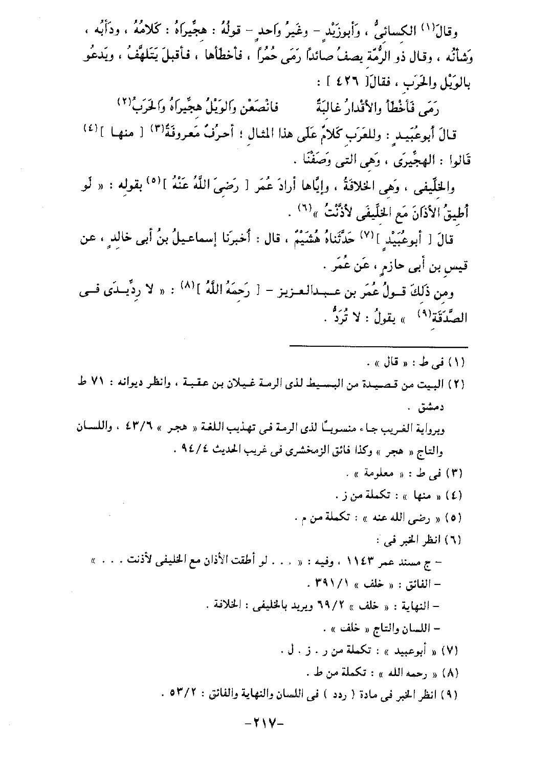 ومن ذلك قول عمر بن عبد العزيز-[رحمه الله]: "لا رديدي في الصدقة" يقول: لا تُرد.