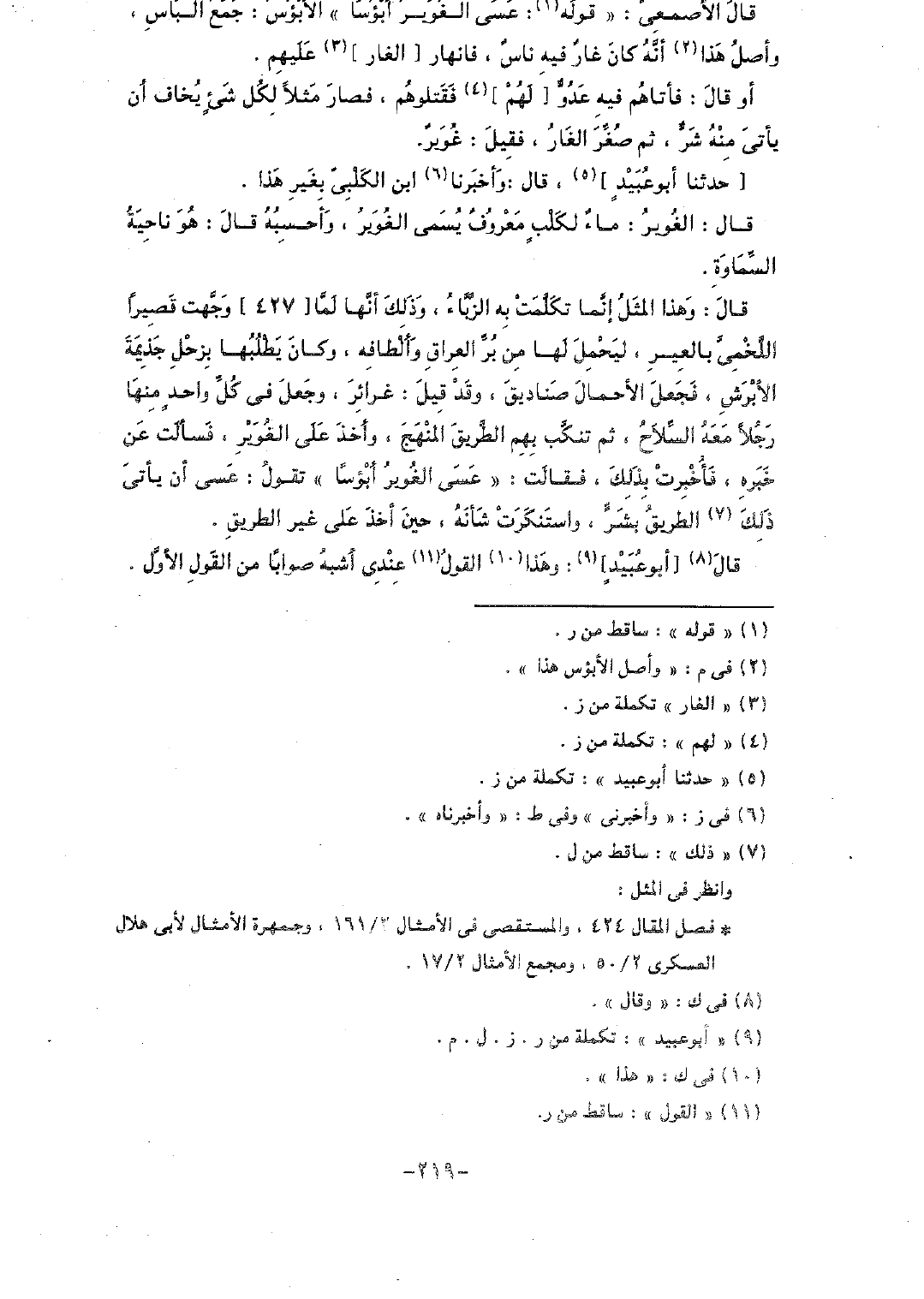 قال الأصمعي: "قوله: عسى الغوير أبؤسا" الأبؤس: جمع الباس، وأصل هذا أنه كان غارٌ فيه ناسٌ، فانهار [الغار] عليهم.