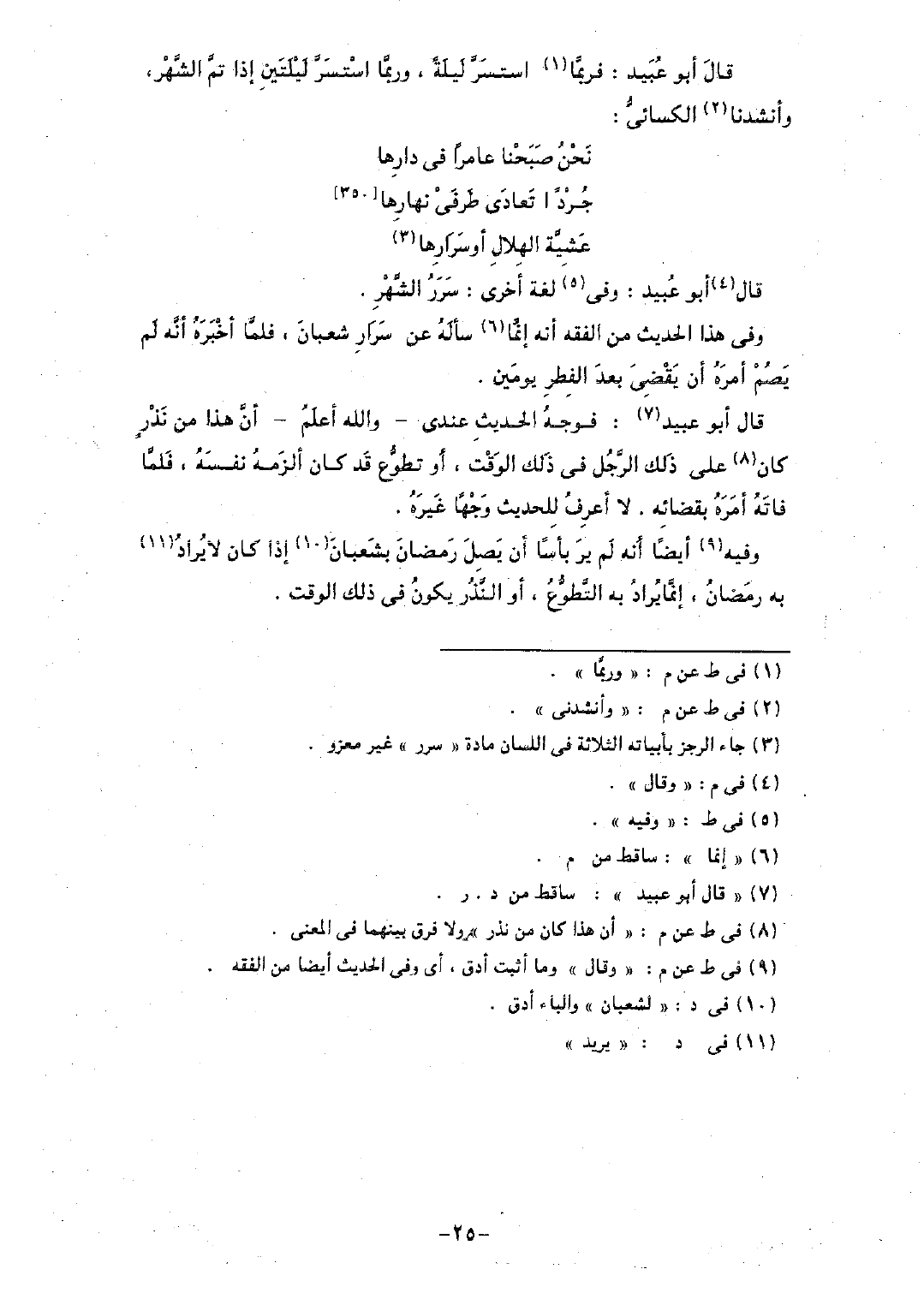 قال أبو عبيد: فربما استسر ليلةً، وربما استسر ليلتين إذا تم الشهر، وأنشدنا الكسائي: