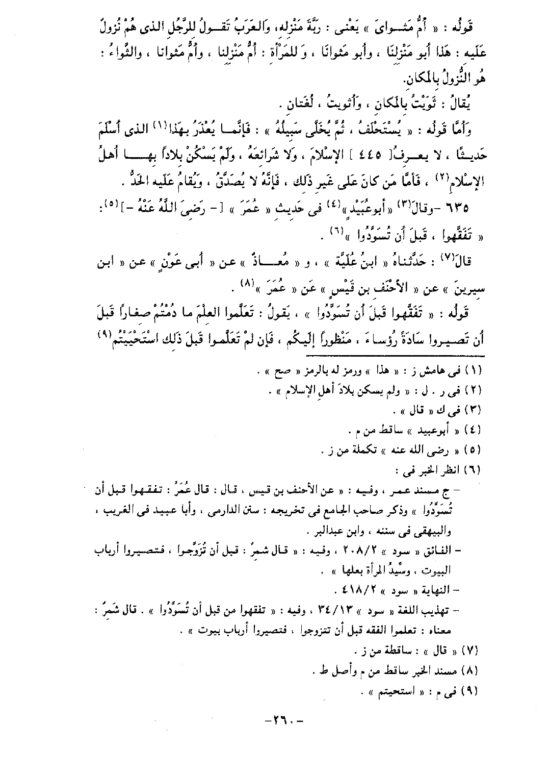 635 - وقال "أبو عبيدٍ" في حديث "عمر" [- رضي الله عنه-]: "تفقهوا، قبل أن تسودوا".