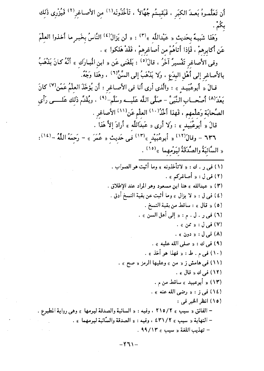 قال "أبو عبيدٍ": والذي أرى أنه في الأصاغر: أن يؤخذ العلم عمن كان بعد أصحاب النبي - صلى الله عليه وسلم-، ويقدم ذلك على رأي الصحابة وعلمهم، فهذا أخذُ العلم عن الأصاغر.