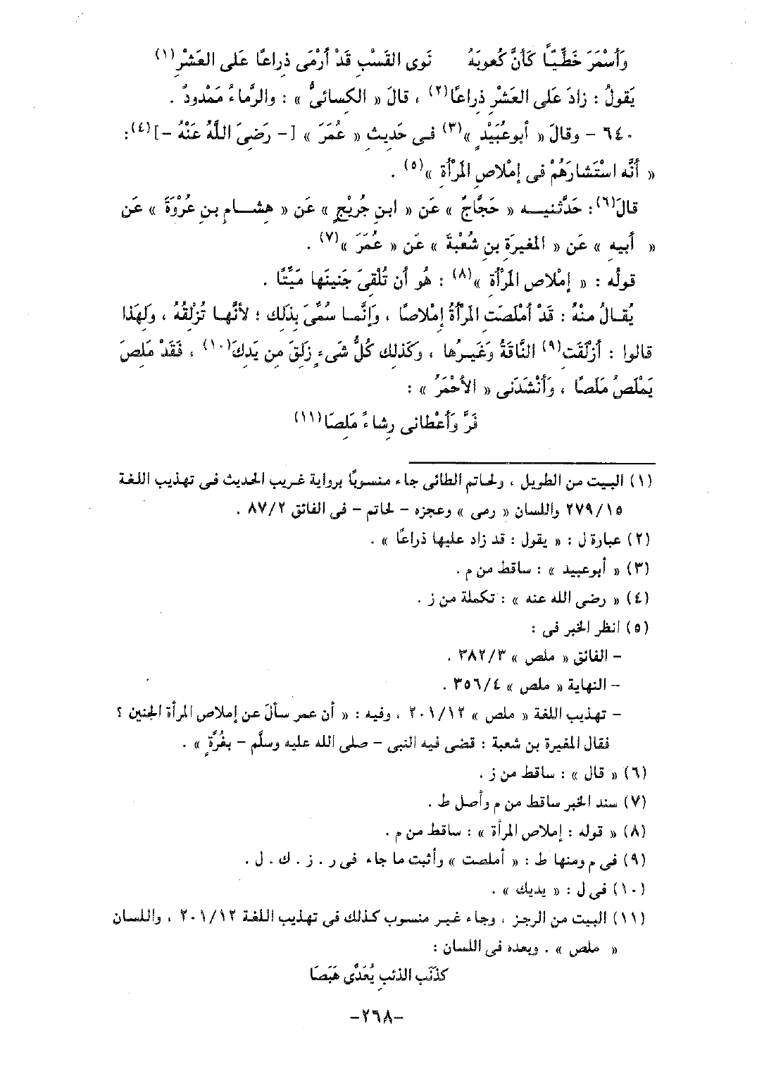 640 - وقال "أبو عبيدٍ" في حديث "عمر" [- رضي الله عنه-]: "أنه استشارهم في إملاص المرأة".