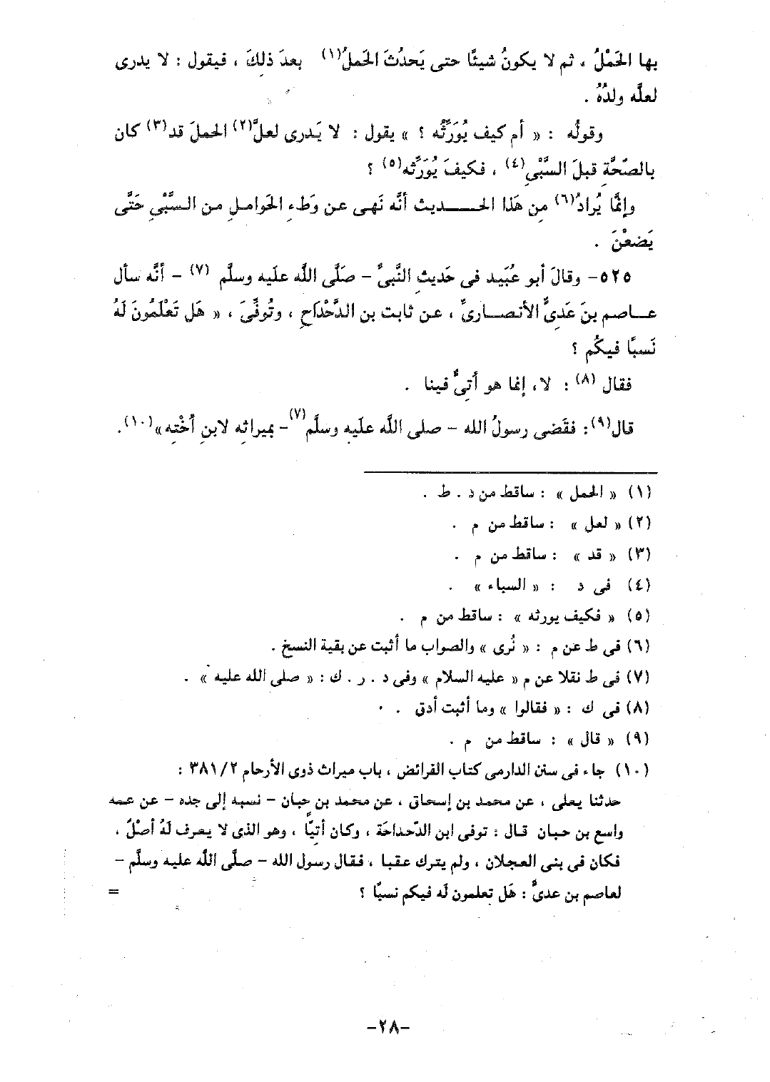 525 - وقال أبو عبيد في حديث النبي - صلى الله عليه وسلم- أنه سأل عاصم بن عدي الأنصاري، عن ثابت بن الدحداح، وتوفي، "هل تعلمون له نسباً فيكم؟