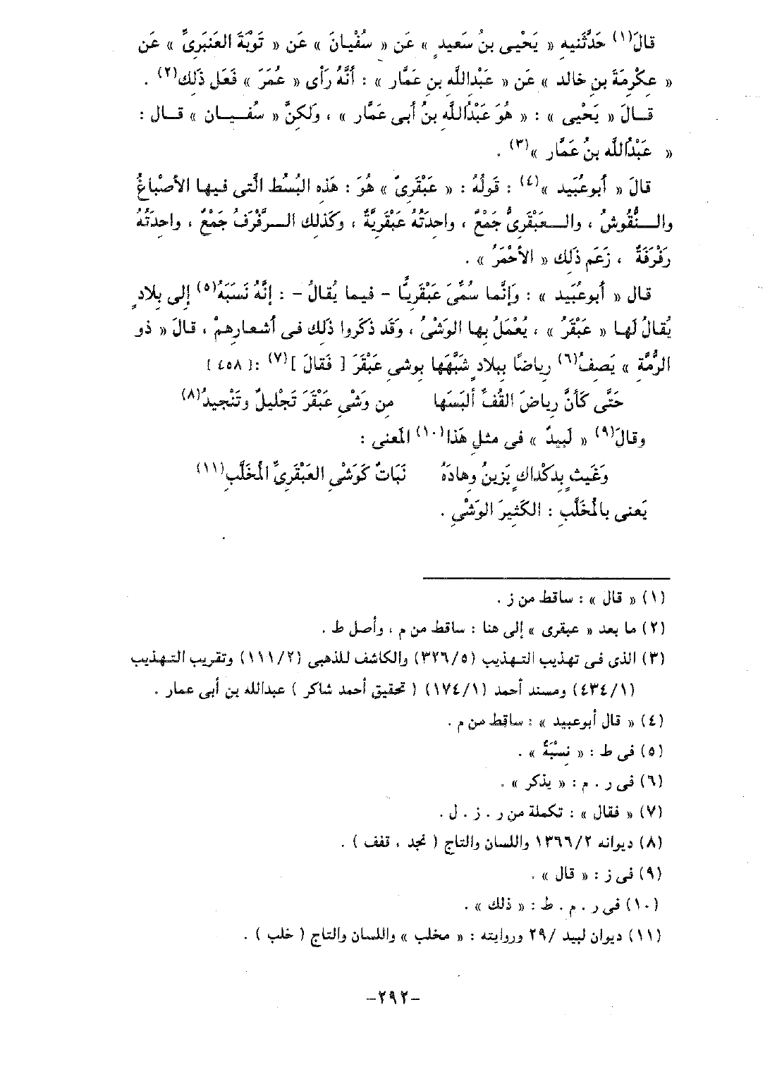 قال "أبو عبيد": وإنما سمي عبقريًا -فيما يقال-: إنه نسبه إلى بلادٍ يقال لها "عبقر"، يعمل بها الوشى، وقد ذكروا ذلك في أشعارهم، قال "ذو الرمة" يصف رياضًا ببلادٍ شبهها بوشى عبقر [فقال]: