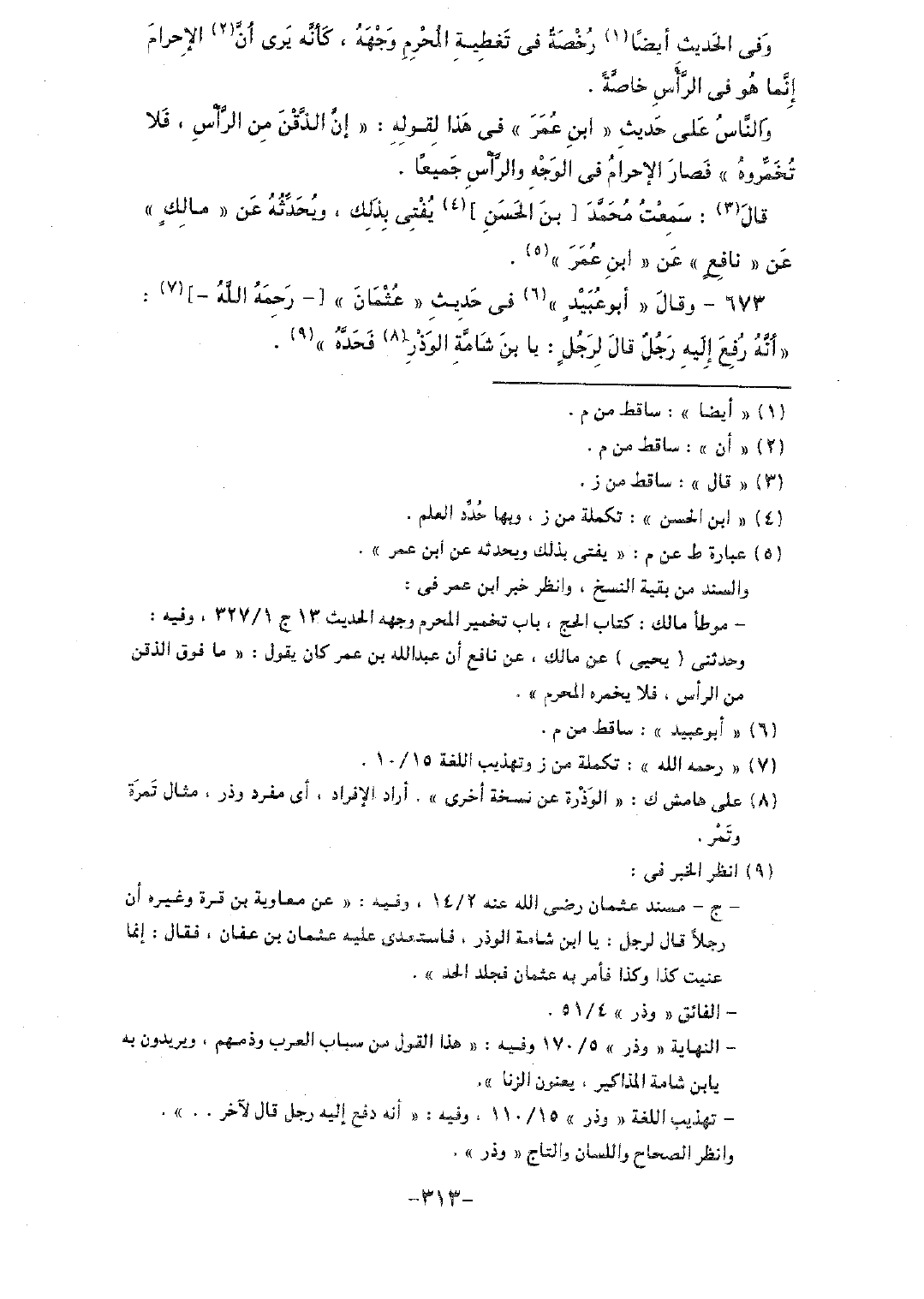 673 - وقال "أبو عبيدٍ" في حديث "عثمان" [رحمه الله]: "أنه رفع إليه رجل قال لرجلٍ: يا بن شامة الوذر فحده".