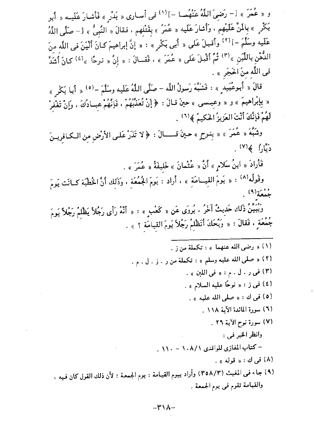 قال "أبو عبيدٍ": فشبه رسول الله -صلى الله عليه وسلم- "أبا بكرٍ" "بإبراهيم" و"عيسى" حين قال: (إن تعذبهم، فانهم عبادك، وإن تغفر لهم فإنك أنت العزيز الحكيم).
