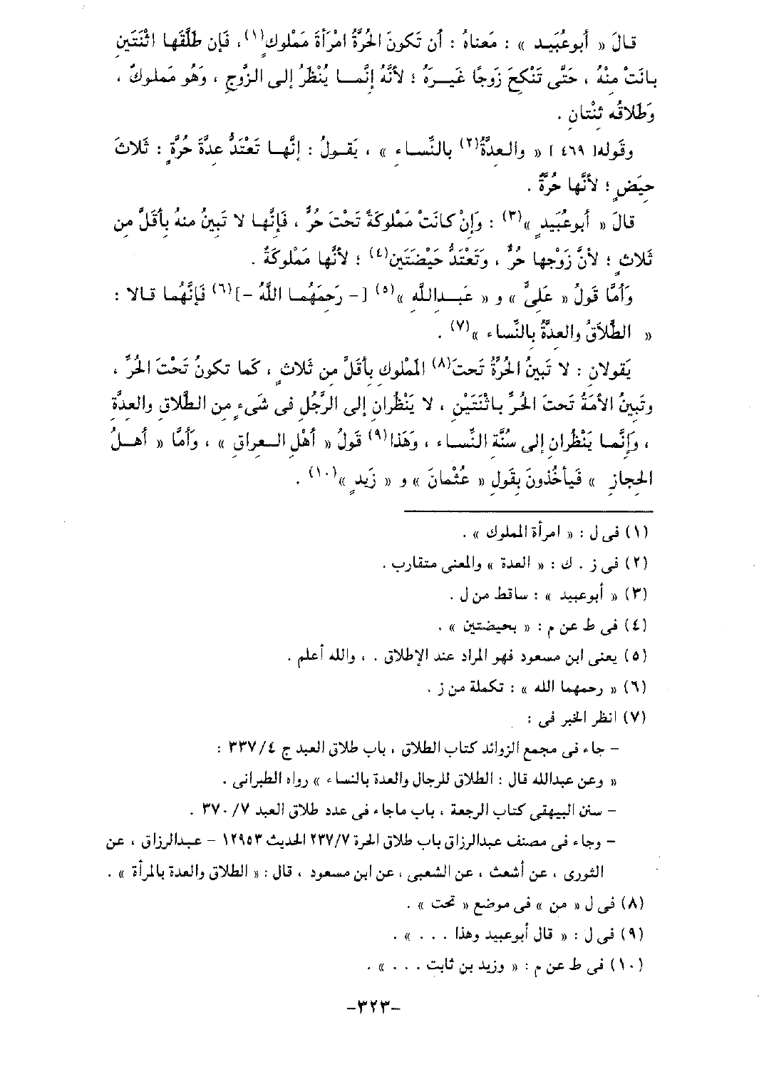 قال "أبو عبيد": معناه: أن تكون الحرة امرأة مملوكٍ، فإن طلقها اثنتين بانت منه، حتى تنكح زوجًا غيره؛ لأنه إنما ينظر إلى الزوج، وهو مملوك، وطلاقه ثنتان.