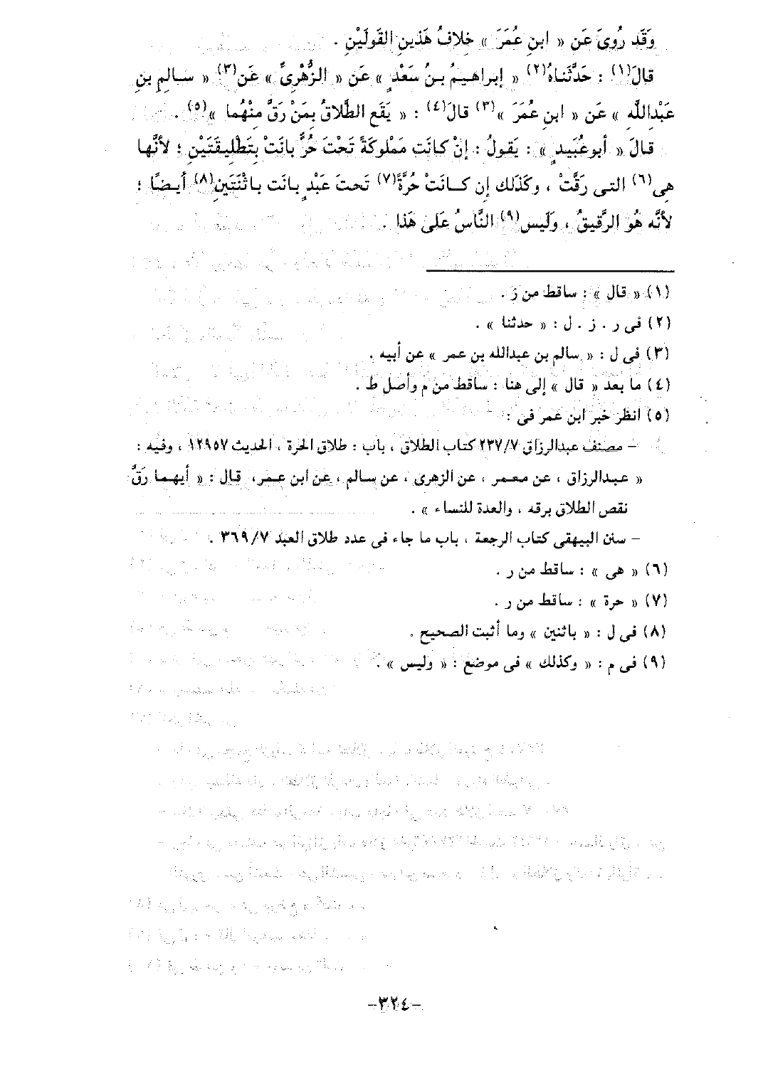 قال: حدثناه "إبراهيم بن سعدٍ" عن "الزهري" عن "سالم بن عبد الله" عن "ابن عمر" قال: "يقع الطلاق بمن رق منهما".