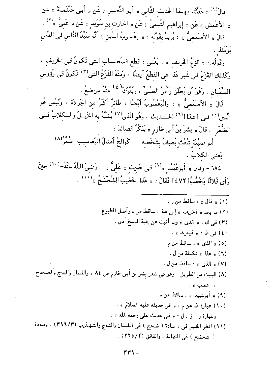 684 - وقال "أبو عبيدٍ" في حديث "علي" -رضي الله عنه- حين رأى فلانًا يخطب فقال: "هذا الخطيب الشحشح".