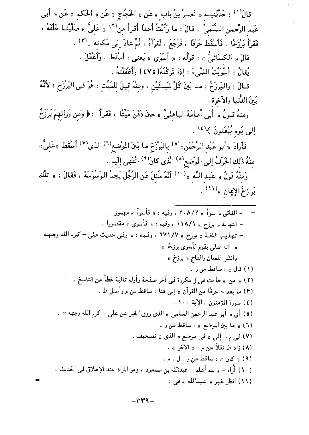 فأراد "أبو عبد الرحمن" بالبرزخ ما بين الموضع الذي أسقط "علي" منه ذلك الحرف إلى الموضع الذي كان انتهى إليه.