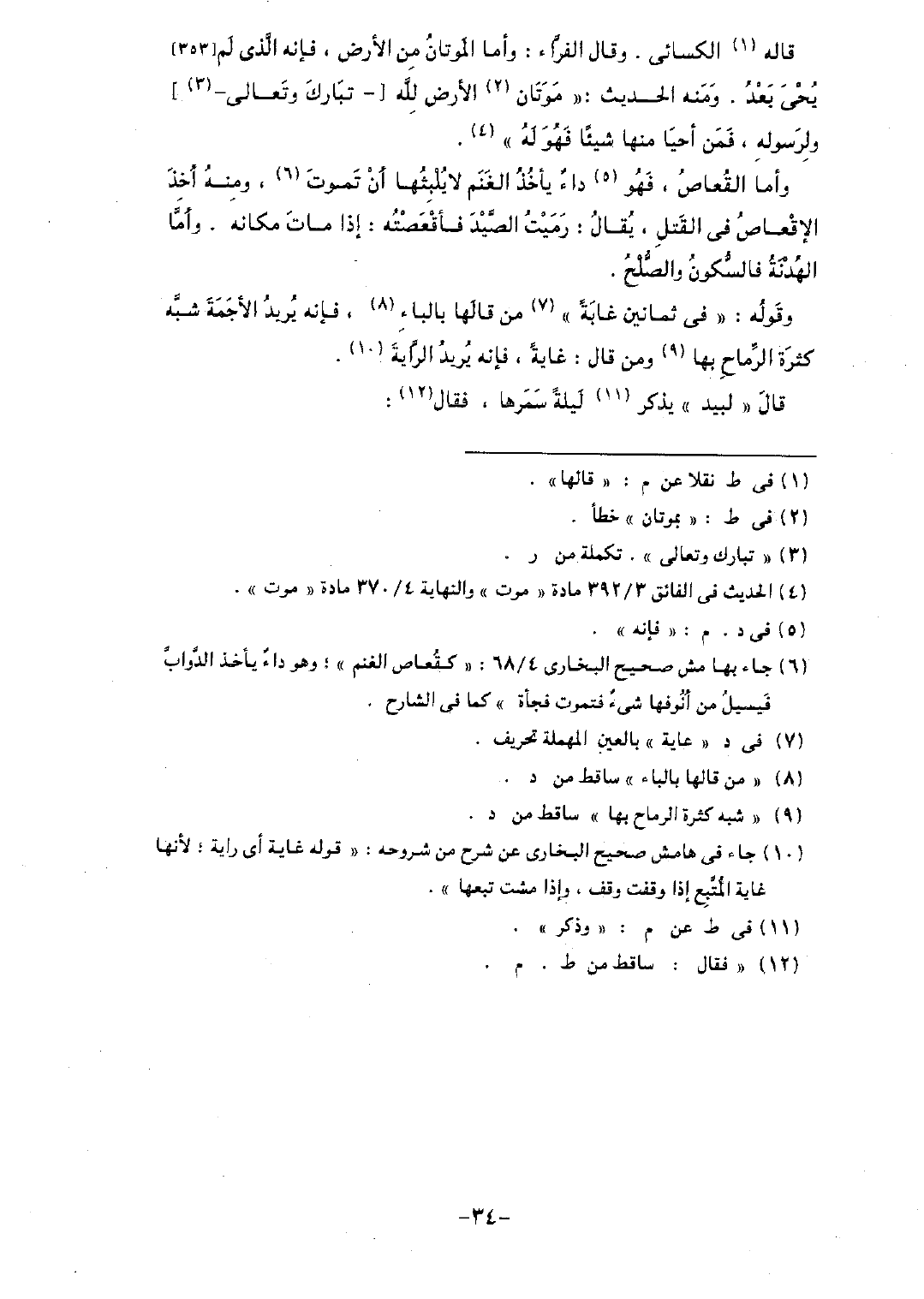 وأما القعاص، فهو داء يأخذ الغنم لا يلبثها أن تموت، ومنه أخذ الإقعاص في القتل، يقال: رميت الصيد فأقعصته: إذا مات مكانه. وأما الهدنة فالسكون والصلح.