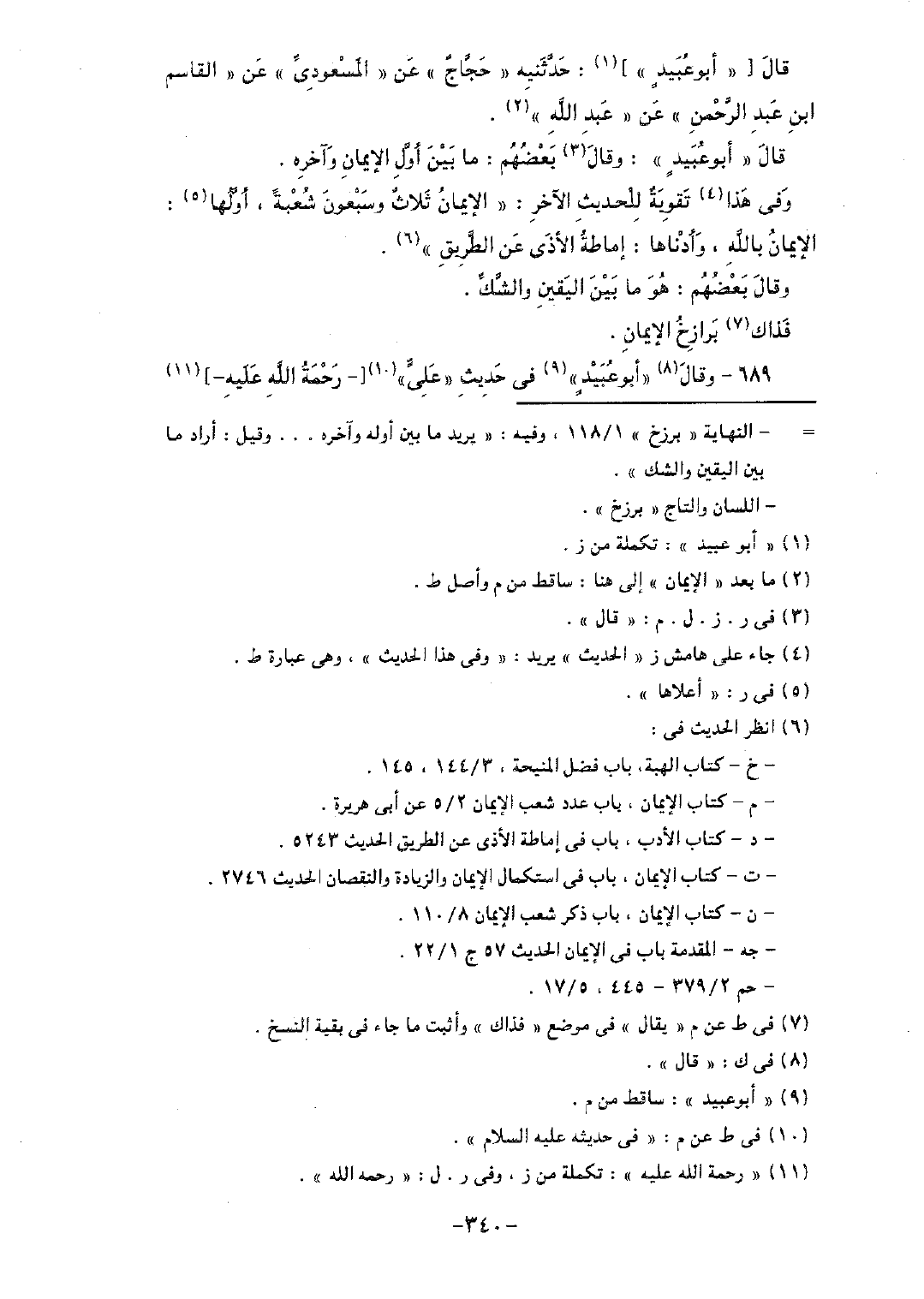قال ["أبو عبيدٍ"]: حدثنيه "حجاج" عن "المسعودي عن "القاسم ابن عبد الرحمن" عن "عبد الله".