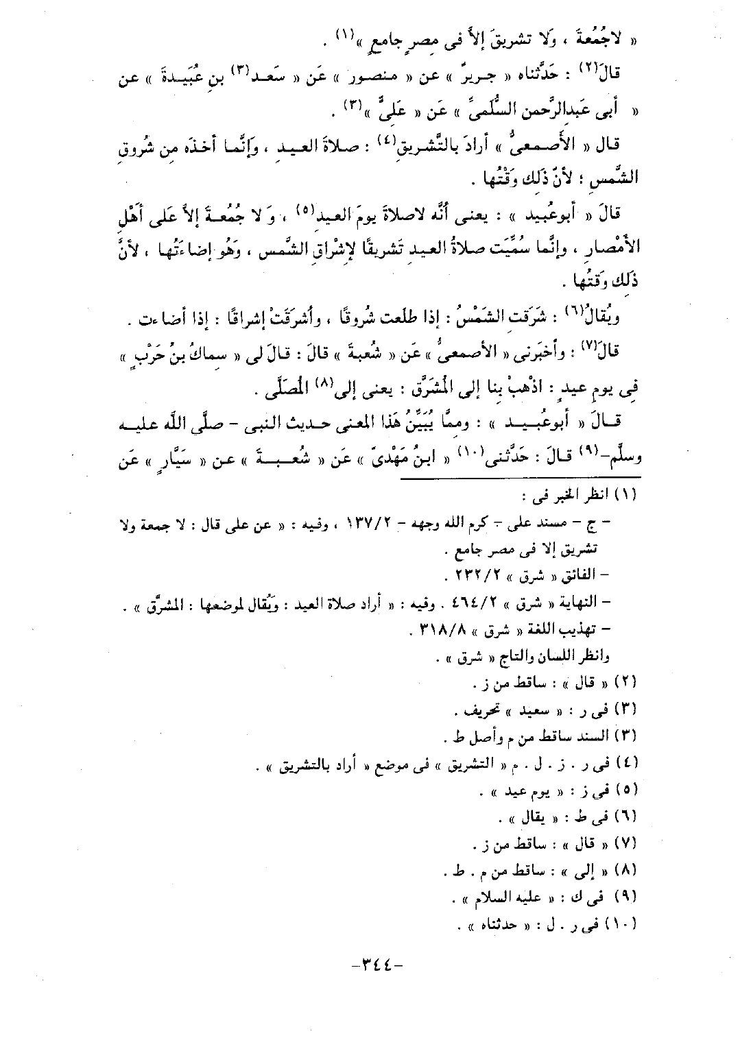 قال "أبو عبيد": يعني أنه لا صلاة يوم العيد، ولا جمعة إلا على أهل الأمصار، وإنما سميت صلاة العيد تشريقًا لإشراق الشمس، وهو إضاءتها، لأن ذلك وقتها.