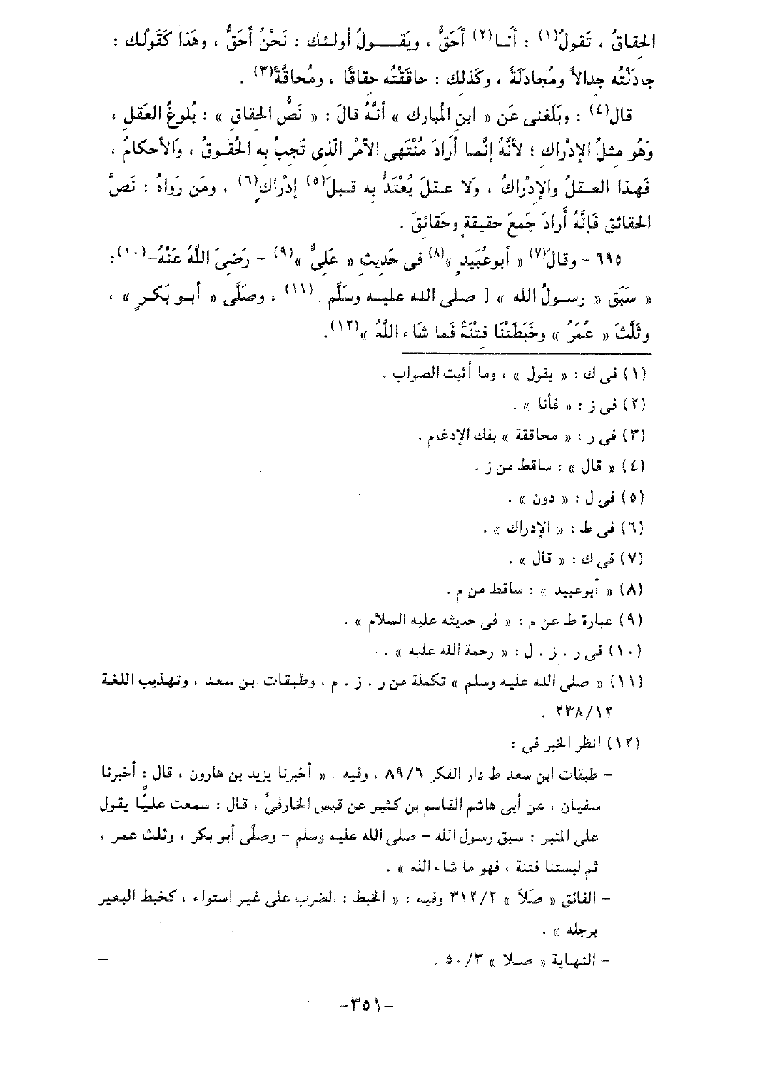 قال: وبلغني عن "ابن المبارك" أنه قال: "نص الحقاق": بلوغ العقل، وهو مثل الإدراك؛ لأنه إنما أراد منتهى الأمر الذي تجب به الحقوق، والأحكام، فهذا العقل والإدراك، ولا عقل يعتد به قبل إدراكٍ، ومن رواه: نص الحقاق فإنه أراد جمع حقيقة وحقائق.