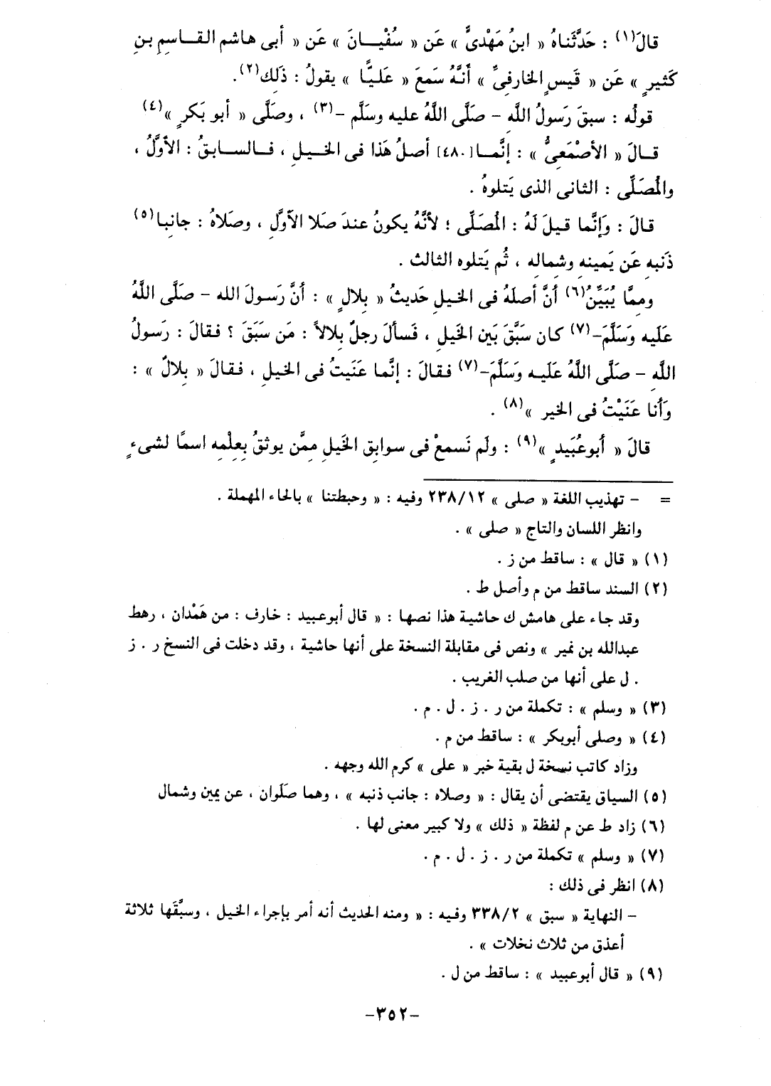 قوله: سبق رسول الله - صلى الله عليه وسلم -، وصلى "أبو بكر" قال "الأصمعى" إنما [480] أصل هذا في الخيل، فالسابق: الأول، والمصلى: الثانى الذى يتلوه.
