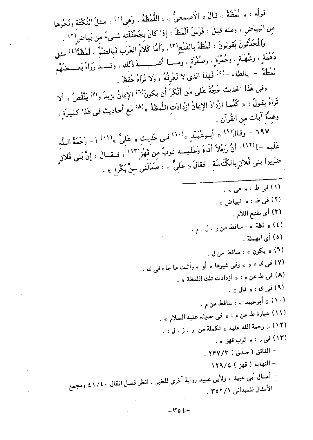 والمحدثون يقولون: لمظة بالفتح، وأما كلام العرب فبالضم، لمظة مثل دهمةٍ، وشهبةٍ، وحمرةٍ، وصفرةٍ، وما أشبه ذلك، وقد رواه بعضهم لمطةً -بالطاء- فهذا الذي لا نعرفه، ولا نراه حفظ.