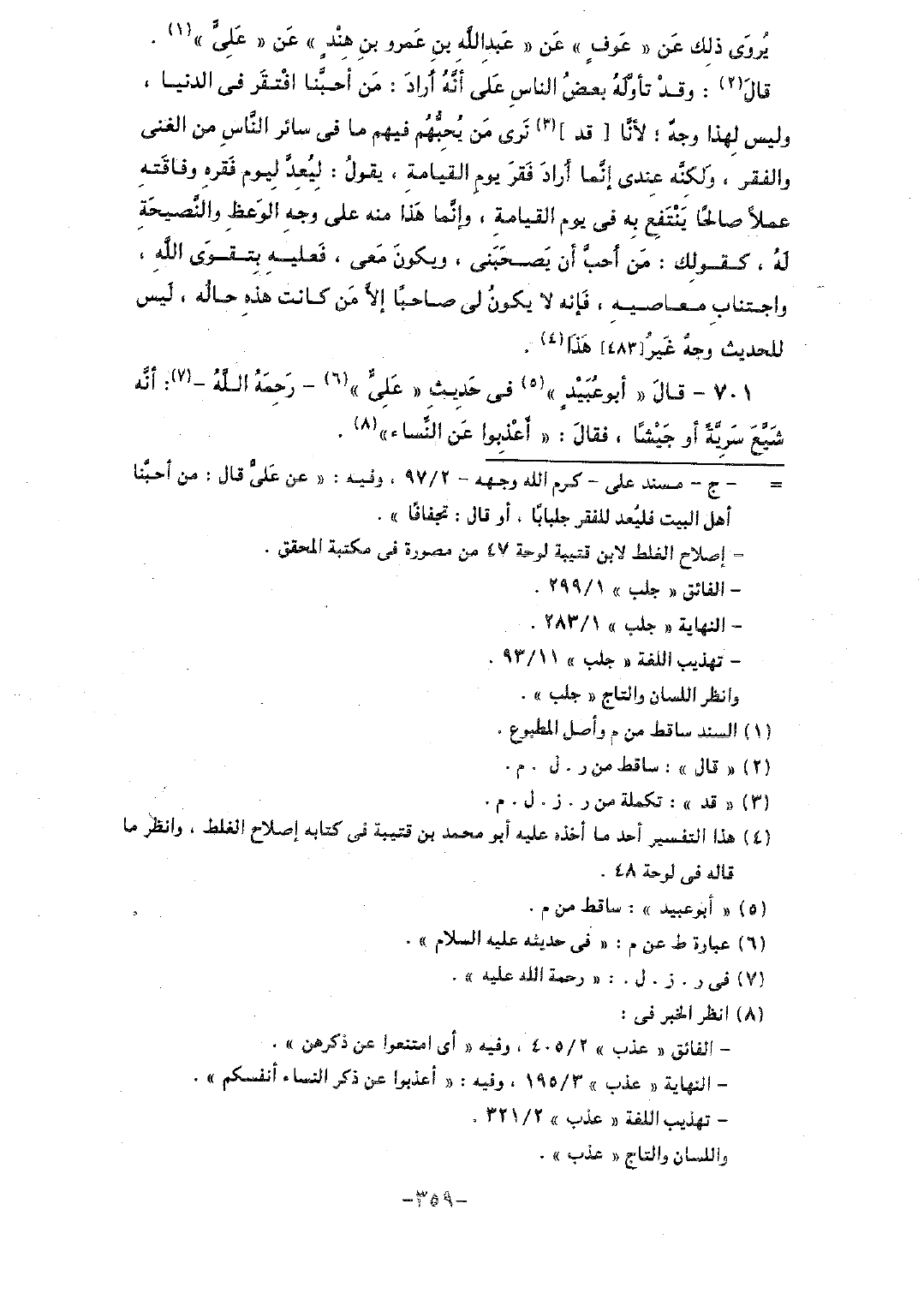 701 - قال "أبو عبيدٍ" في حديث "علي" -رحمه الله-: أنه شيع سريةً أو جيشًا، فقال: "أعذبوا عن النساء".