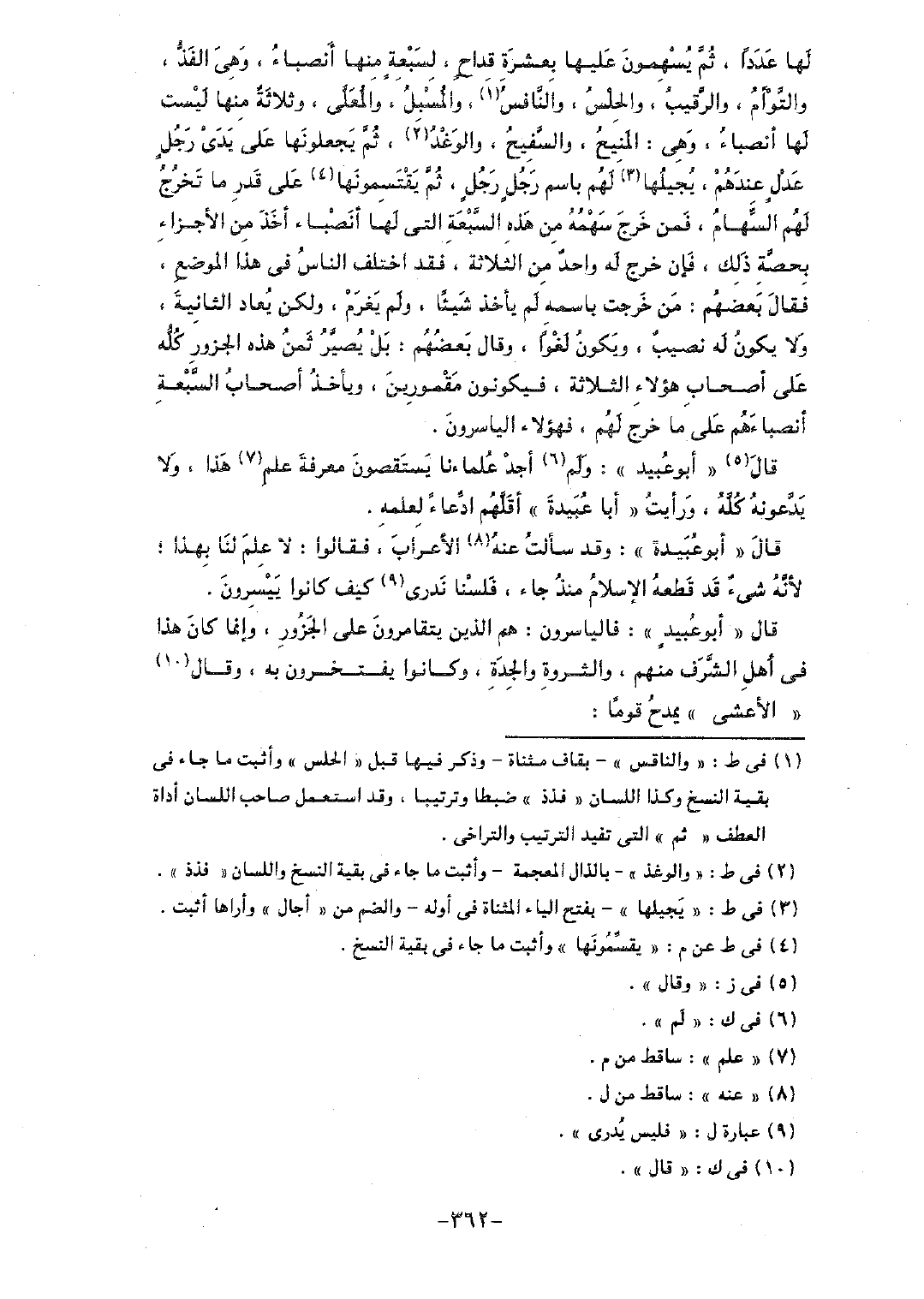 قال "أبو عبيد": ولم أجد علماءنا يستقصون معرفة علم هذا، ولا يدعونه كله، ورأيت "أبا عبيدة" أقلهم ادعاءً لعلمه.