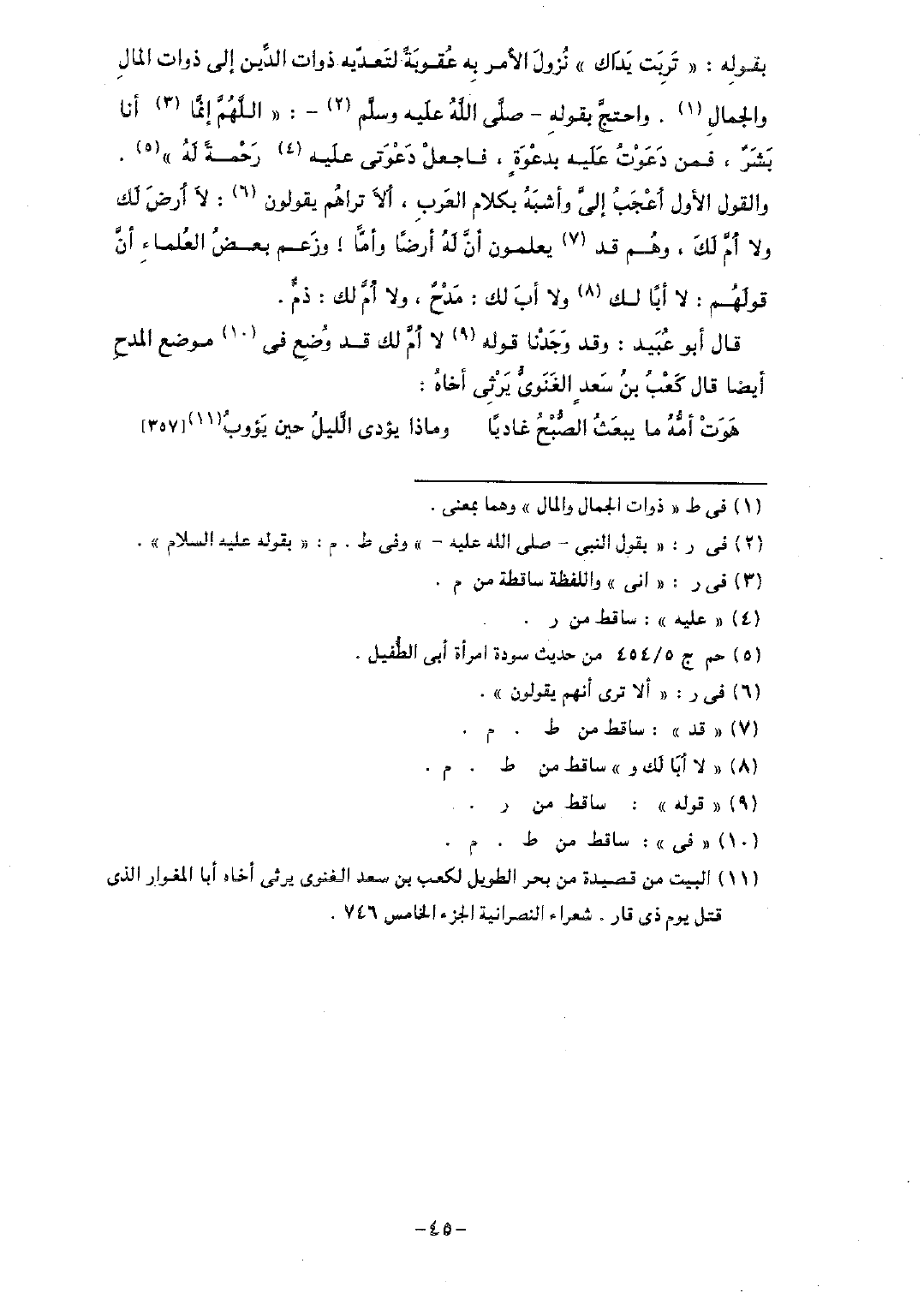 قال أبو عبيد: وقد وجدنا قوله لا أم لك قد وضع في موضع المدح أيضاً قال كعب بن سعد الغنوي يرثى أخاه: