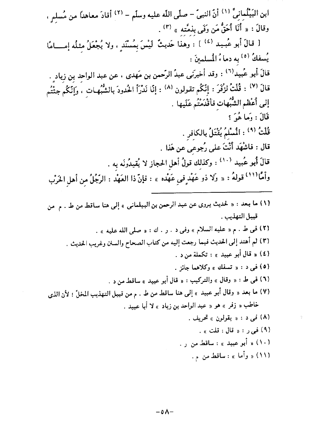 [قال أبو عبيد]: وهذا حديث ليس بمسندٍ، ولا يجعل مثله إماماً يُسفك به دماء المسلمين: