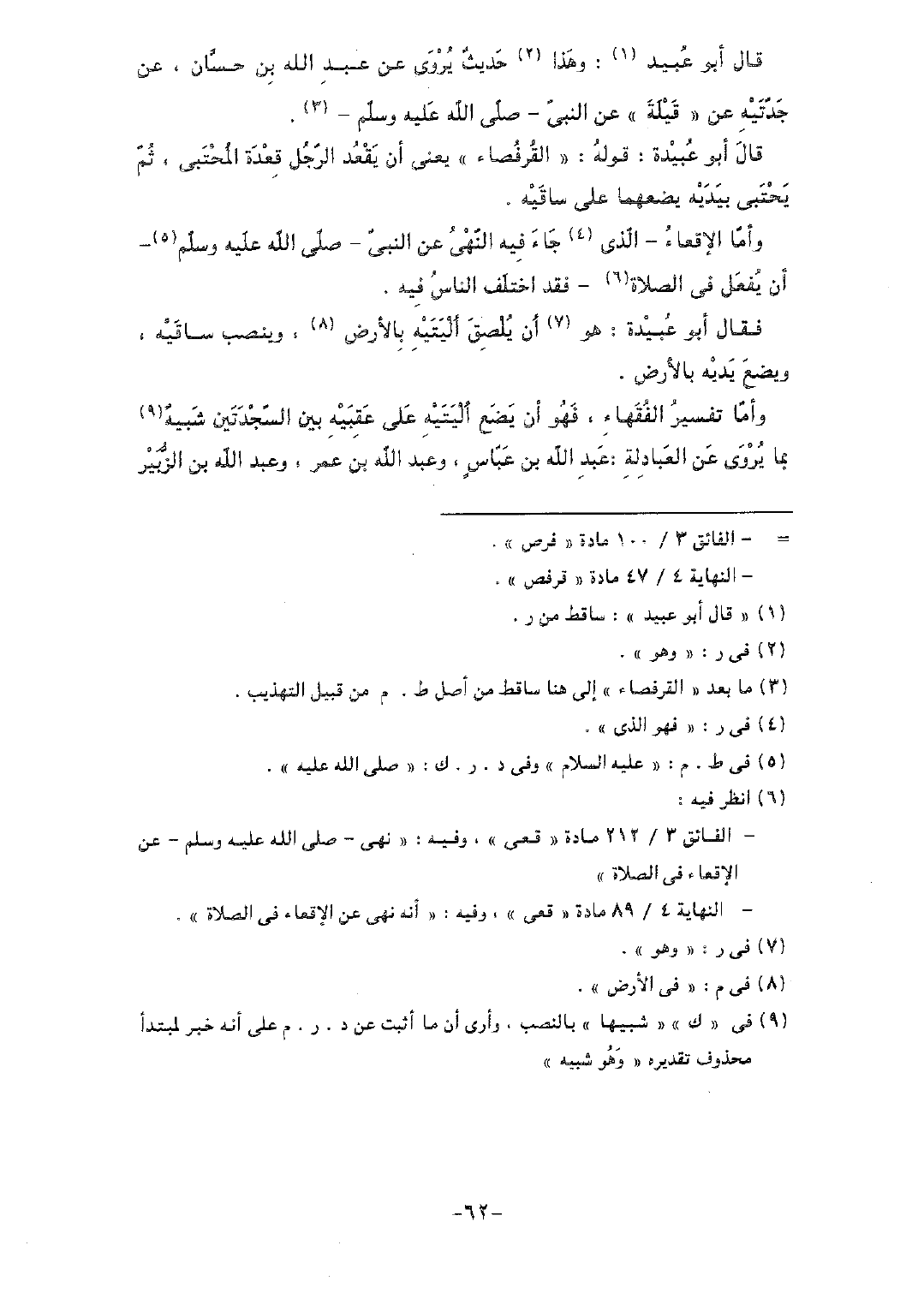 وأما تفسير الفقهاء، فهو أن يضع اليتيه على عقبيه بين السجدتين شبيهٌ بما يُروى عن العبادلة: عبد الله بن عباسٍ، وعبد الله بن عمر، وعبد الله بن الزبير