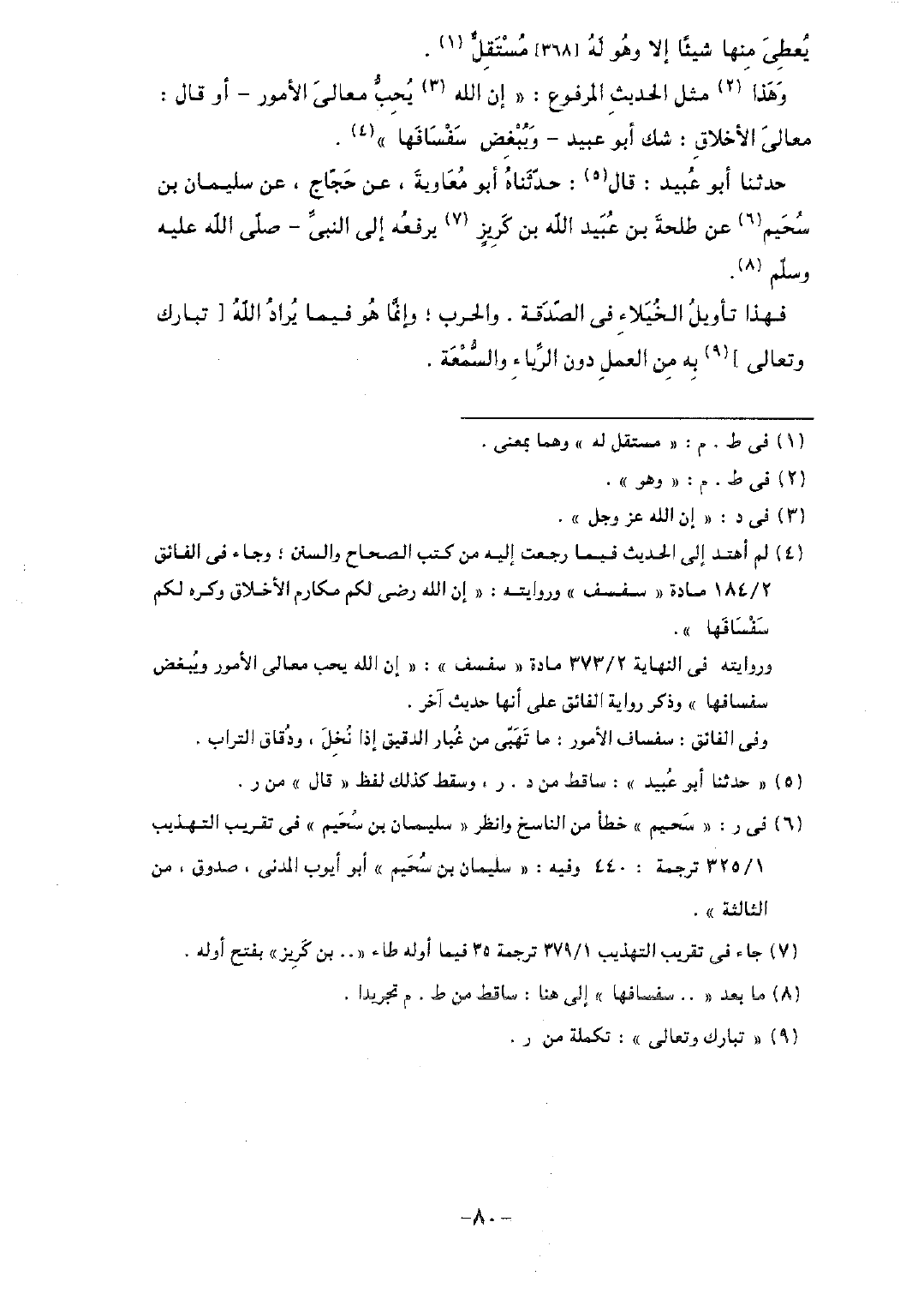 وهذا مثل الحديث المرفوع: "إن الله يحب معالي الأمور- أو قال: معالي الأخلاق: شك أبو عبيد- ويبغض سفسافها".