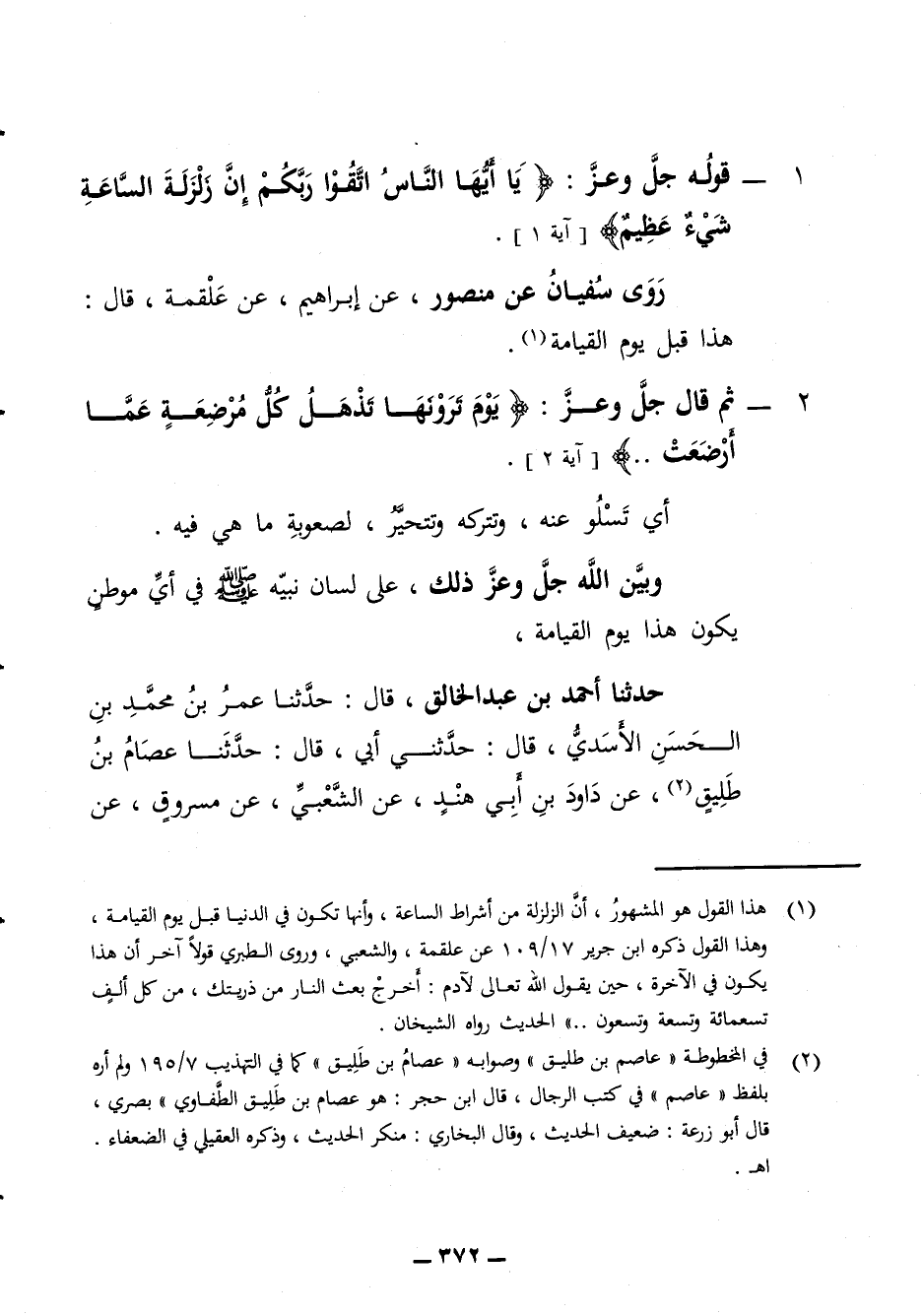 1 - قوله جل وعز يا أيها الناس اتقوا ربكم إن زلزلة الساعة شئ عظيم