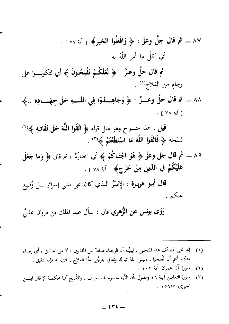 87 - ثم قال جل وعز وافعلوا الخير آية 77 أي كل ما أمر الله به ثم قال جل وعز لعلكم تفلحون أي لتكونوا على